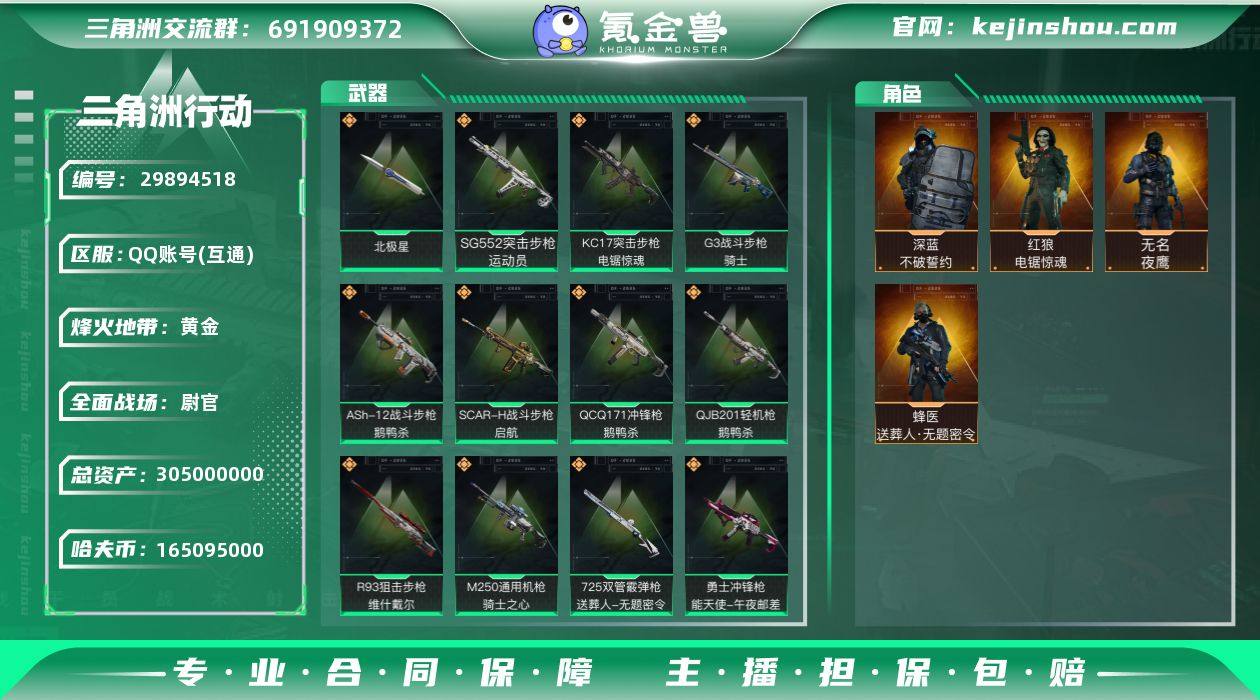 【SJZF4222】总资产(M):305M/哈夫币(K):165095K/哈夫币(K):165095K/全面战场等级:50_段位:尉官/烽火地带等级:60_段位:黄金/蜂医-送葬人·无题密令(S5)/无名-夜鹰(S4)/深蓝-不破誓约(S6)/红狼-电锯惊魂/近战-北极星/近战-黑鹰/M4A1突击步枪-阿米娅/ASh-12战斗步枪-鹅鸭杀/M16A4突击步枪-狩猎时刻/SG552突击步枪-运动员/AK-12突击步枪-夜鹰/AK-12突击步枪-特斯拉线圈/SCAR-H战斗步枪-启航/G3战斗步枪-狩猎时刻/G3战斗步枪-骑士/CAR-15突击步枪-阿米娅/K437突击步枪-北极星/KC17突击步枪-电锯惊魂/Vector冲锋枪-狩猎时刻/UZI冲锋枪-特斯拉线圈/SMG45冲锋枪-骑士/SR-3M紧凑突击步枪-特斯拉线圈/勇士冲锋枪-能天使-午夜邮差/QCQ171冲锋枪-北极星/QCQ171冲锋枪-鹅鸭杀/725双管霰弹枪-送葬人-无题密令/M250通用机枪-骑士之心/QJB201轻机枪-鹅鸭杀/SR-25射手步枪-水墨云图/R93狙击步枪-维什戴尔/复合弓-黑-天际线/AK-12突击步枪-原型机(典藏)/PSG-1射手步枪-原型机(典藏)/AKM突击步枪-林中猎手/QBZ95-1突击步枪-曙光/Ash-12战斗步枪-守夜人/ASh-12战斗步枪-无极限/AUG突击步枪-蝮蛇/SG552突击步枪-尖端治疗/SG552突击步枪-深海恐惧/SCAR-H战斗步枪-囚徒/G3战斗步枪-战场英杰/G3战斗步枪-流沙送葬/PTR-32突击步枪-工业狂潮/AS Val突击步枪-尖端治疗/AS Val突击步枪-典狱官/AS Val突击步枪-百步穿杨/腾龙突击步枪-无垢/腾龙突击步枪-猎鳄行动/K437突击步枪-守护者/MP5冲锋枪-深海恐惧/MP5冲锋枪-战术竞备/P90冲锋枪-暗影猎手/P90冲锋枪-莫斯提马/Vector冲锋枪-阿萨拉文明/Vector冲锋枪-猎鳄行动/Vector冲锋枪-异域战争/SR-3M紧凑突击步枪-荒野求生/SR-3M紧凑突击步枪-战术竞备/勇士冲锋枪-深海恐惧/MP7冲锋枪-无垢/MP7冲锋枪-守护者/M1014霰弹枪-林中猎手/S12K霰弹枪-曙光/PKM通用机枪-蝮蛇/PKM通用机枪-守夜人/PKM通...