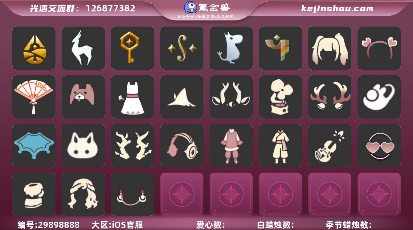 账号类型: 邮箱账号 季节已毕业: 归巢季,九色鹿季,筑巢季,二重奏季,姆明季,彩染季 完成地图: 霞谷 礼包: 九色鹿角,音乐桌,鹿角,兔子鞋,瑞雪,兔子,枯角,彩虹耳机,新年裤,暗彩装扮,小提琴,爱心眼镜,雪人鞋,海蓝波浪发型,满月耳坠,史力奇帽子,向日葵连衣裙,献瑞折扇礼包,渐变双马尾发型礼包,心心相印发饰礼包,小狗周年发饰