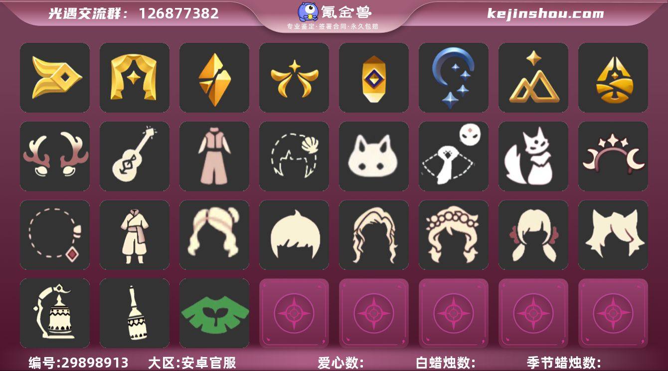 账号类型: 手机账号 季节已毕业: 风行季,表演季,破晓季,欧若拉季,夜行季,追忆季,拾光季,归巢季 礼包: 鹿角,吉他,奔跑裤子,贝壳,兔子,猫套,猫背饰,星月头饰,彩虹耳钉,暗彩装扮 发型: 正太,花环,樱花,公主,虚荣,猫耳 斗篷: 绿芽 配饰: 手持小铃铛,大铃铛乐器 亮点: 姆明半毕业,祥云瑞气服饰,冥龙南瓜,斗笠