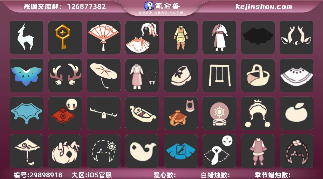 账号类型: 手机账号 季节已毕业: 九色鹿季,筑巢季 礼包: 蝙蝠套,九色鹿角,莲花斗,鹿角,荷叶伞,肯德基联动,运动鞋,秋千,餐桌,白绒金,瑞雪,福娃,跷跷板,小船,风之旅人,雪花球,绒帽,橘子,红伞,南瓜,雪花,鲤鱼,tgc,猫套,新年裤,四叶草,飞蛾套,雪人鞋,龙鳞束身长袍,园丁装扮,衔福献瑞礼包,献瑞折扇礼包