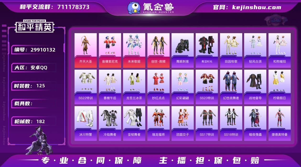 可改实名 6特效枪 4粉装 125套装 182枪械 8王牌印记 55440热力值 Kar98K-创世·救赎[2级] M416-电玩时刻[5级] PKM-江南烟雨[4级] SCAR-L-锦绣绵绵[5级] AKM-炫紫旋律[5级] M416-五爪金龙[5级] 创世救赎 齐天大圣 未来歌姬 音爆索尼克 雏菊兔兔 粉日山川 K27663 和平精英买号永久包赔带二次营地ID:783094046