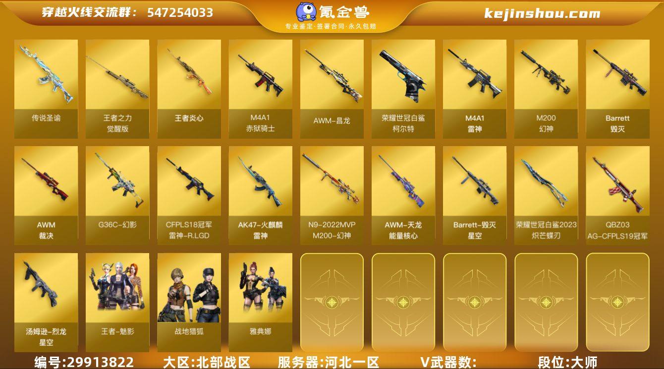 YXB 特价秒杀 【河北一区】【可二次实名】【可排位】【大师5】【CF点96】【V武器数9】【幻神2皮】【传说圣谕】【M200-幻神】【幻神-宠儿-2021MVP】【M200-幻神-N9-2022MVP】【AWM-裁决】【QBZ03-AG-CFPLS19冠军】【G36C-幻影】【柯尔特-荣耀世冠白鲨2023】【炽芒蝶刃-荣耀世冠白鲨2023 皮肤】【奇洋探员】【乔伊教练】【王者-魅影】【修道士】【云海玲珑】【M4A1-雷神】【雷神-R.LGD-CFPLS18冠军】【雷神-虎将】【M4A1-雷神音效卡】【火麒麟-雷神】【Barrett-毁灭】【毁灭-星空】