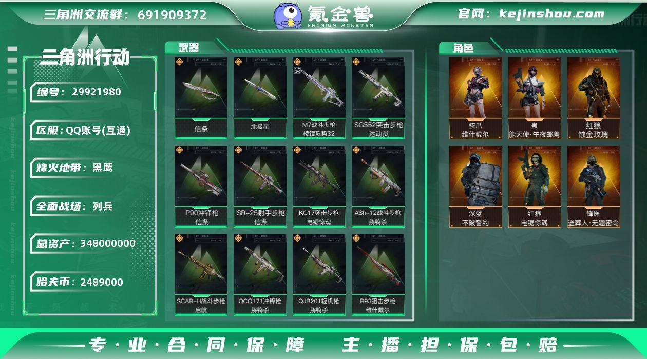 【SJZQH43】总资产(M):348M/哈夫币(K):2489K/哈夫币(K):2489K/全面战场等级:22_段位:列兵/烽火地带等级:60_段位:黑鹰/红狼-蚀金玫瑰/蛊-能天使·午夜邮差/骇爪-维什戴尔/蜂医-送葬人·无题密令(S5)/深蓝-不破誓约(S6)/红狼-电锯惊魂/近战-北极星/近战-信条/近战-黑鹰/M7战斗步枪-棱镜攻势S2(典藏)/M4A1突击步枪-蚀金玫瑰/M4A1突击步枪-阿米娅/ASh-12战斗步枪-鹅鸭杀/M16A4突击步枪-狩猎时刻/SG552突击步枪-运动员/SCAR-H战斗步枪-启航/G3战斗步枪-狩猎时刻/CAR-15突击步枪-阿米娅/腾龙突击步枪-捞点薯条/K437突击步枪-北极星/KC17突击步枪-电锯惊魂/P90冲锋枪-信条/Vector冲锋枪-狩猎时刻/Vector冲锋枪-能天使-午夜邮差/勇士冲锋枪-能天使-午夜邮差/QCQ171冲锋枪-北极星/QCQ171冲锋枪-鹅鸭杀/S12K霰弹枪-电锯惊魂/725双管霰弹枪-送葬人-无题密令/M250通用机枪-骑士之心/QJB201轻机枪-鹅鸭杀/M14射手步枪-电锯惊魂/SR-25射手步枪-信条/R93狙击步枪-维什戴尔/AWM狙击步枪-捞点薯条/93R-捞点薯条/P90冲锋枪-天命(典藏)/ASh-12战斗步枪-无极限/M16A4突击步枪-竞赛选手/AUG突击步枪-蝮蛇/G3战斗步枪-流沙送葬/AS Val突击步枪-典狱官/AS Val突击步枪-百步穿杨/腾龙突击步枪-无垢/K437突击步枪-守护者/MP5冲锋枪-深海恐惧/MP5冲锋枪-战术竞备/MP5冲锋枪-竞技风/SR-3M紧凑突击步枪-荒野求生/SR-3M紧凑突击步枪-战术竞备/勇士冲锋枪-深海恐惧/勇士冲锋枪-工业狂潮/MP7冲锋枪-无垢/MP7冲锋枪-守护者/PKM通用机枪-蝮蛇/PKM通用机枪-荒野求生/Mini-14射手步枪-守护者/SVD狙击步枪-荒野求生/PSG-1射手步枪-无垢/SV-98狙击步枪-林中猎手/SV-98狙击步枪-囚徒/SV98狙击步枪-猎鳄行动/M700狙击步枪-蝮蛇/M700狙击步枪-百步穿杨/AWM狙击步枪-无极限/复合弓-守护者/M4A1突击步枪-繁盛/AKM突击步枪-战术演练/AKM突击步枪-肃杀/QBZ...