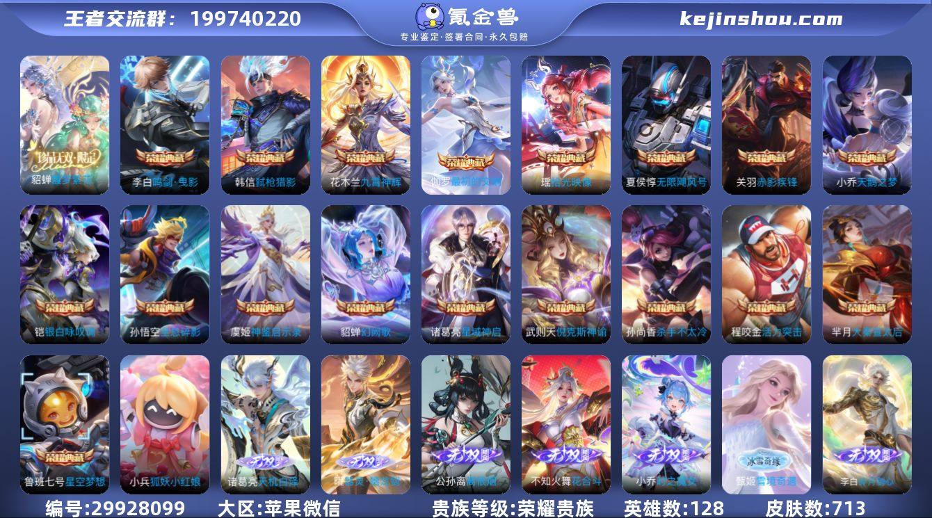 GBZ3648 苹果微信 荣耀V10 713皮 满典藏8星元【福星一套 金色灵宝6套 21W流光积分 赞萌露比/狐妖小红娘小兵 105按键7天幕 10W金色隐藏灵宝 打野39段 发育路38段 全能大师 6热门金标】貂蝉珍品无双 329限定125传说11无双9珍品传说 金标韩信/宫本武藏/西施/司马懿/孙尚香/妲己 236幸运值 巅峰1200 4931英雄碎片 5109皮肤碎片 12张改名卡 营地号:1694932893 【珍品传说】怪盗基德,孙策时之奇旅,江户川柯南,器灵·落星盏,兔狲·蓬尾,黑崎一护,朽木白哉,酷洛米之心,大耳狗之梦,【无 双】花合斗,韩信群星魔术团,真我赫兹瑶,时之魔女,青丘·九尾,碎月剑心,神器·明辉仪,离恨烟,甄姬雪境奇遇,器灵·螭龙剑,馥梦繁花,天机白泽,【荣耀典藏】九霄神辉,赤影疾锋,全息碎影,鸣剑·曳影,星域神启,武则天,倪克斯神谕,天鹅之梦,无限飓风号,活力突击,星空梦想,杀手不太冷,大秦宣太后,银·白咏叹调,幻阙歌,弑枪猎影,神鉴启示录,拾光映像,最初的交响,【星元皮肤】金色仲夏夜,幻海之心,未来机甲,时之愿境,荆棘舞步,太华·红枫,岁雨灵司,幻舞叠翠