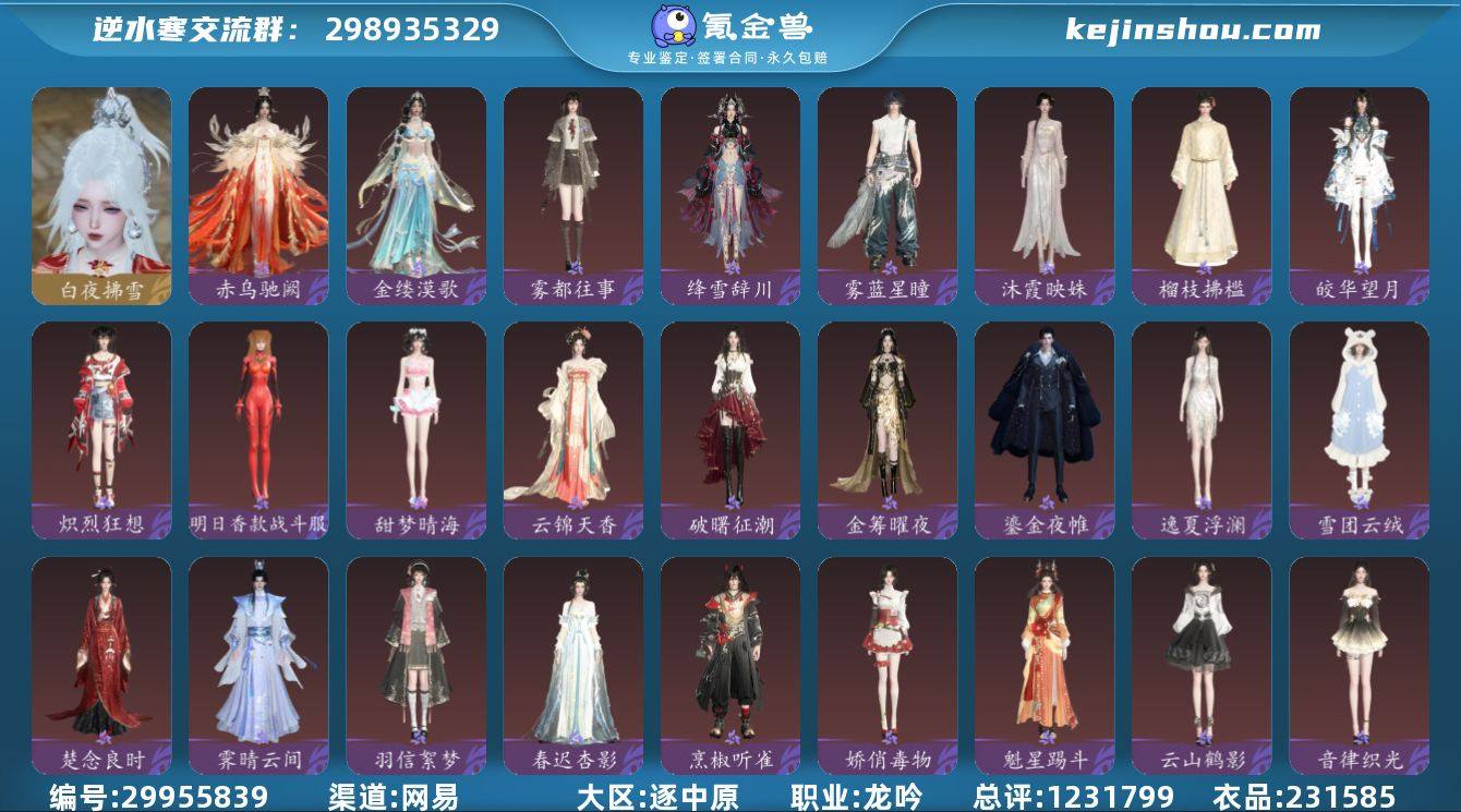 网易支付状态:可注销 换绑冷却:无冷却 职业:龙吟 总评:1231799 衣品:231585 白夜拂雪 赤乌驰阙,金缕漠歌,雾都往事,绛雪辞川,雾蓝星瞳,沐霞映姝,榴枝拂槛,炽烈狂想,皎华望月,明日香款战斗服,甜梦晴海,云锦天香,破曙征潮,金筹曜夜,鎏金夜帷,逸夏浮澜,雪团云绒,楚念良时,霁晴云间,羽信絮梦,春迟杏影,烹椒听雀,娇俏毒物,魁星踢斗,云山鹤影,音律织光,碎玉怜姻,追鱼思渊,雨落空山,洛神芳蔼,心韵追声,墨山烟霏,丹橘织雪,岁鳞衔新,朔雪从风,晚翠酌金,湖岚镜心,赤焰飞彤,荒朽遗风,仙桃折枝,云汉逢夕,春日序曲,绛英流芳,芳汀花影,星迹梦语,川峦游墨,悬蛛结心,狸奴颂锦,平野星罗,玉蕊含梅,霜天凝露,金翎琼枝,晴岚蜃海,幽兰沐月,岁寒竹雪,纯白心绪,幽蝶眠花,凤吟振羽,律动音阶,跃动心芒,闻鹤九皋,筵舞云歌,晶梦绮舞,恣行无拘,花萼繁舞,雪月凌风,侠影流霜,云腾游雾,呱容月貌,丹枫秋意,茸客衔春,竹间萌客,糯粽缠青,风动荷衣,南风知暑,露染芙蕖,锦尾芊芊,宅宅乐,开阳执戈,帝皇铠甲,贪狼摄星,衣香鬓影,曦照东晖,灵兔献瑞,鳞骨逢幽,玄喵夜行,鳞纱幻海,天纵恒尊,白灵雪魅,极夜天曦,暮云玄风,无常白袍,楚楚浅茉,鳞衫丽织,霸揽长霄,鸢染烟纱,天狼北顾,银角辟幽,素尘凌霜,空林悠萌,春梢剪锦,花朝春信,如意瑞喜 风行·翱凤焰,糖趣解忧,骋风叱焰,晚墨海骐,赤龙驹,撒手没,嘤嘤猫 卖家说:【九天揽月】1231788龙吟,把酒临风;衣品值231585;国色值59440;已用天赏石15颗;未用天赏石0颗;天霓染1;灵韵3;馆藏4级,累充24635元,赠礼剩余额度:6504纹玉,套装199套;【天霓染发型】:天霓苦昼短;【天赏发型】:月百合,白发桀骜,白发含曜,【武器外观】:尘缘引梦武器,幻焰狐影,雷霆武器,星朔九天武器;【武功外观】:轻功诀问仙,天曦四象朱雀;【天赏祥瑞】:照玉堂;【天赏灵宠】:灵宠天羽凰,【限定外观】:旋悠光,炽渊龙啸;装备特技7金;内功周天金3木1火3;【灵韵内功】:逢虚,凛风绝刃;庄园13级;育宠9级