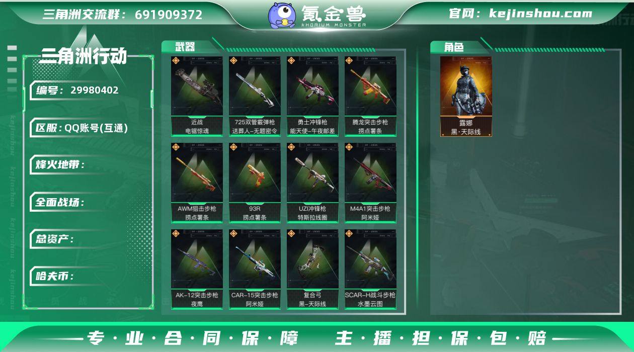 总资产182.8M/现金54771k/电锯惊魂/露娜-黑·天际线,蜂医-送葬人·无题密令,无名-夜鹰/S12K霰弹枪-电锯惊魂,M14射手步枪-电锯惊魂,ASh-12战斗步枪-鹅鸭杀,QCQ171冲锋枪-鹅鸭杀,QJB201轻机枪-鹅鸭杀,AK-12突击步枪-特斯拉,UZI冲锋枪-特斯拉线圈,SR-3精凑突击步枪-特斯拉线圈,腾龙突击步枪-捞点薯条,AWM狙击步枪-捞点薯条,93R-捞点薯条,725双管霰弹枪-送葬人-无题密令,M4A1突击步枪-阿米娅,CAR-15突击步枪-阿米娅,SCAR-H战斗步枪-启航,AK-12突击步枪-夜鹰,SMG-45冲锋枪-骑士,勇士冲锋枪-能天使-午夜邮差,SCAR-H战斗步枪-水墨云图,复合弓-黑-天际线,/20-1,编号:ZPWIT39