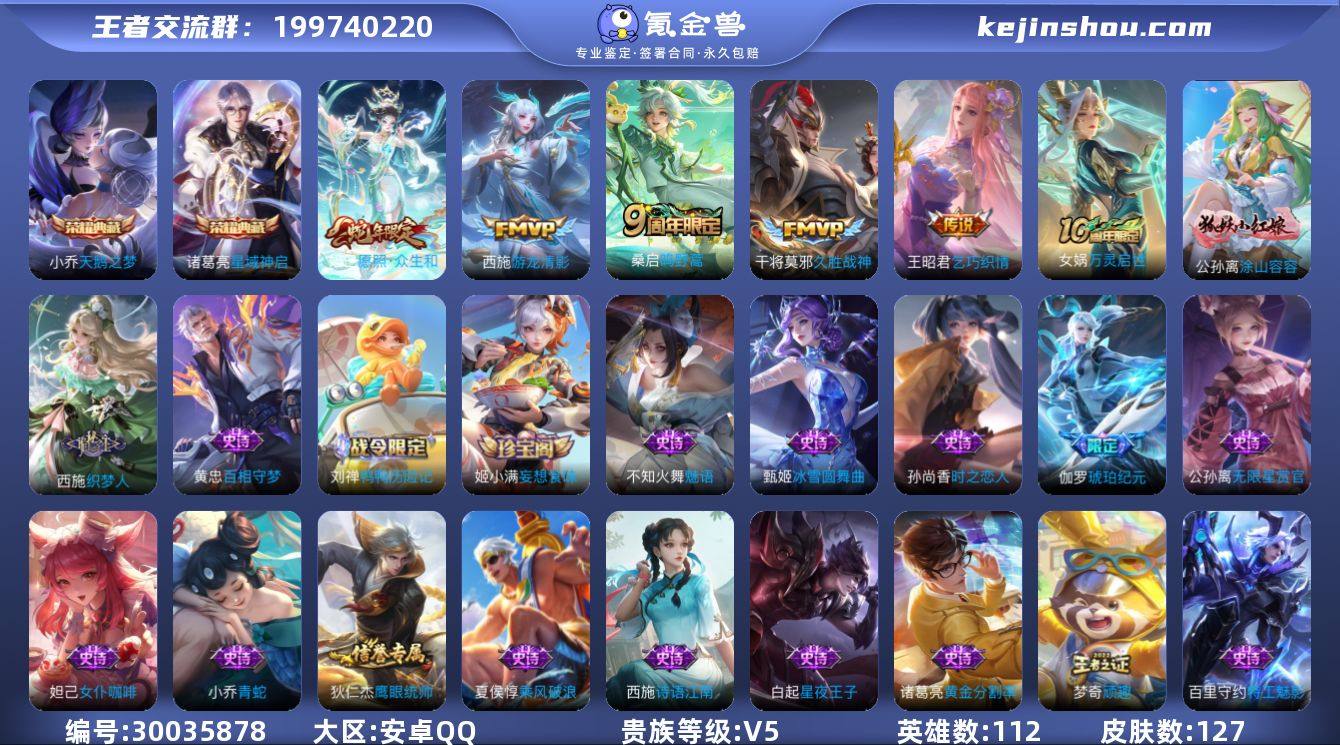 贵族等级:V5 典藏皮肤数:2 珍品无双皮肤数:0 无双皮肤数:0 珍品传说皮肤数:0 传说皮肤数:5 史诗皮肤数:34 皮肤数:127 英雄数:112 段位:荣耀王者 卖家说:五万战,59段中路