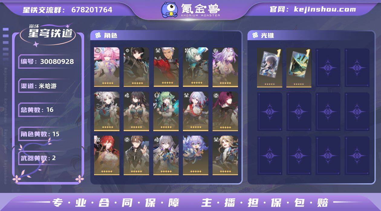 开拓者性别:女 总黄数:16 星轨专票:13 五星角色数:15 0命昔涟,0命丹恒·腾荒,0命Archer,0命那刻夏,0命遐蝶,0命飞霄,0命阮·梅,0命藿藿,0命托帕&账账,0命卡芙卡,0命姬子,0命瓦尔特,0命布洛妮娅,0命白露,0命彦卿 五星光锥数:2 1精但战斗还未结束,1精星海巡航 邮箱状态:未绑定 卖家说:超级无敌欧皇号
