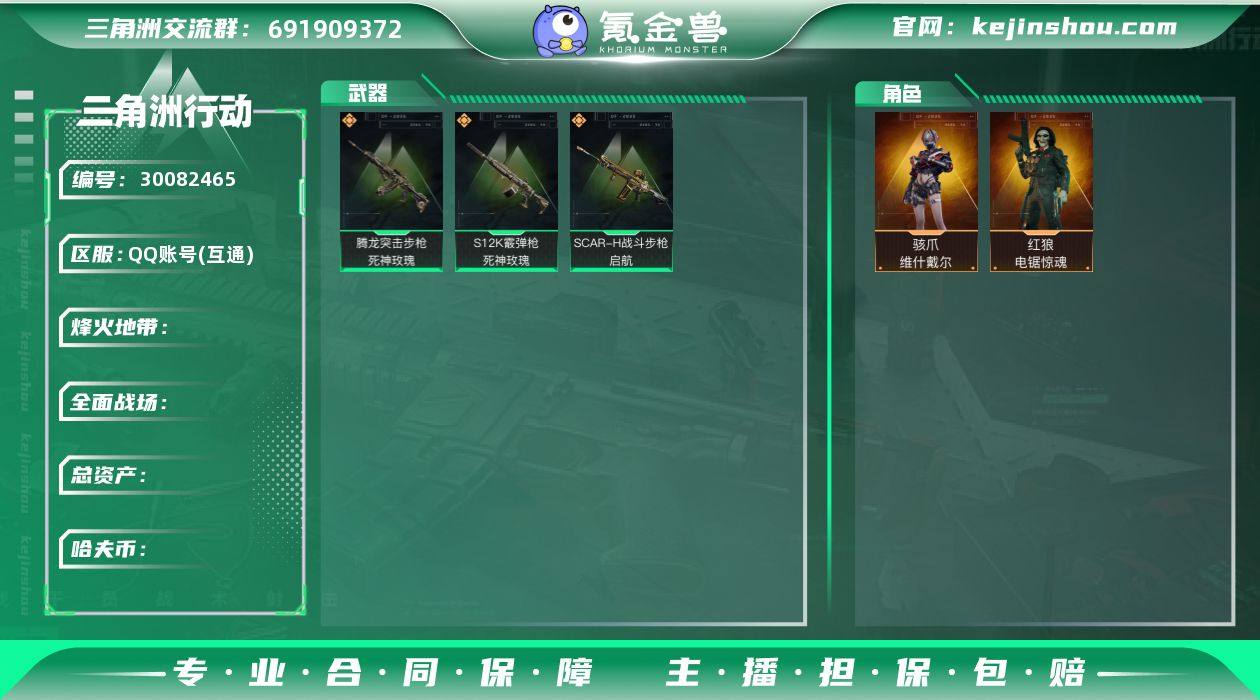 号上140三角币/骇爪-维什戴尔,红狼-电锯惊魂/SCAR-H战斗步枪-启航,腾龙突击步枪-死神玫瑰,ASVal突击步枪-死神玫瑰,S12K霰弹枪-死神玫瑰,ASh-12战斗步枪-鹅鸭杀,QCQ171冲锋枪-鹅鸭杀,QJB201轻机枪-鹅鸭杀,Vector冲锋枪-能天使-午夜邮差,R93狙击步枪-维什戴尔/游.20-1,编号:ZPFUL54
