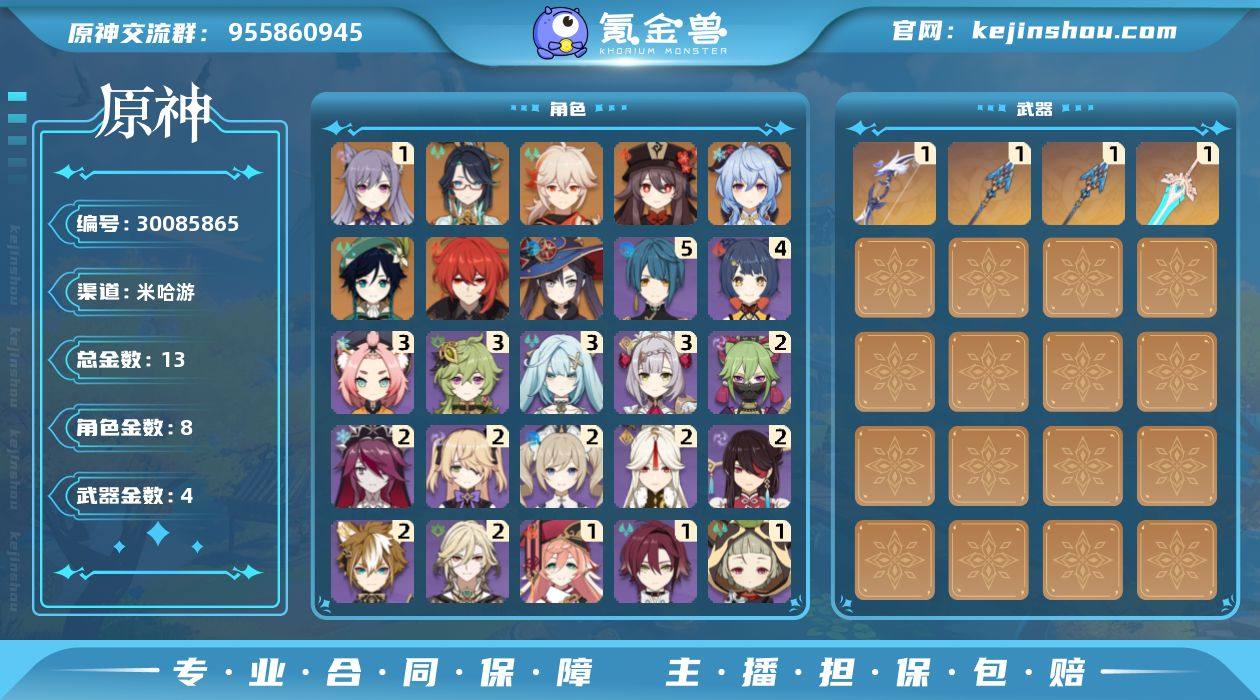 原神56级账号 急出回血 13金 100急出