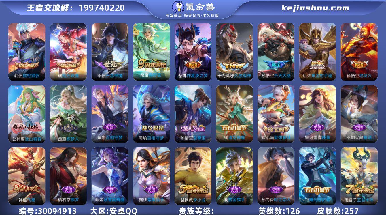 LGW1291【2典藏2星元7传说弑枪猎影时光映像幽冥火金色仲夏夜至尊宝】安卓Q-V7-126英雄-257皮肤2典藏7传说-(可二次)【典藏】 拾光映像 弑枪猎影 【2星传说】幽冥火 金色仲夏夜【传说】 鸣野蒿 齐天大圣 地狱火 久胜战神 一念神魔 黄金射手座 仲夏夜之梦 【热门】涂山容容 至尊宝 飞衡 冰冠公主 原初追逐者 梁祝 织梦人 黄忠百相守梦 星界特工 燃音魔法 电玩爆裂旋风 遇见神鹿 原初探秘者 李小龙 水晶猎龙者 暗隐猎兽者 猫狗日记男 猫狗日记女 金属风暴 地狱岩魂 热力回旋 特工魅影 曙光守护者 特工战影 女武神 蔷薇恋人 黄金分割率 舞动绿茵 妄想食味 逐浪之夏 心灵战警 修罗 晚萤 魅语 白龙吟 紫霞仙子 功夫厨神 心灵骇客 圣诞恋歌 幽灵船长 乘风破浪 圣诞狂欢 末日机甲男 星夜王子 赏金猎手 节奏热浪 天才门将 时之恋人女 暗夜贵公子 街头霸王 箭羽风息 乐园奇幻夜 月团寄思 摇滚巨星 鬼剑武藏 冰雪圆舞曲 花好人间 醍醐杖 万华元夜 东方不败 克喵 演武夺筹 群星魔术团程咬金 驱傩正仪 未来纪元赵云 千军破阵 拳王 沙漠行僧 女仆咖啡 金庭之子 大漠名商 敏锐之力 云中旅人 丁香结 海盐诗旅 皇家上将 擒涛扼浪 魅力维加斯 探海日志 水果甜心 古海寻踪 天穹祈灯 高山流水 星界游侠 江河有灵 纤云弄巧 游园惊梦 五谷丰年 乱世虎臣 鹰眼统帅 魔术师 -营地ID:1835068476