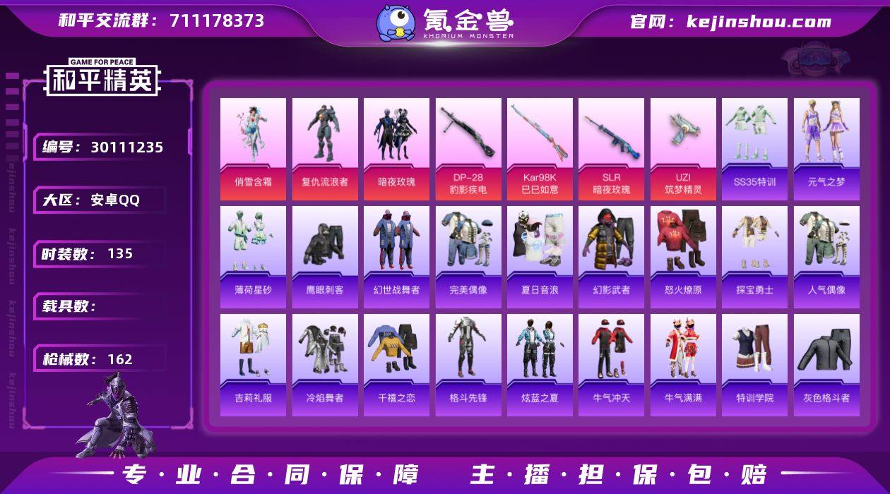 【UZI-筑梦精灵满级】可改实名 4特效枪1满级 3粉装 135套装 162枪械 SLR-暗夜玫瑰[6级] UZI-筑梦精灵[7级] Kar98K-已已如意[5级] DP-28-豹影疾电[5级] 复仇流浪者 俏雪含霜 暗夜玫瑰 元素星魂 王牌印记8 热力值49121 N3289和平精英买号永久包赔带二次营地ID:774145373