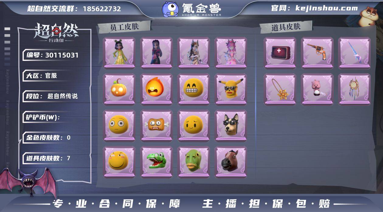 红色皮肤数量:0 金色皮肤数量:0 紫色皮肤数量:4 道具皮肤数量:7 卖家说:有情公主 白光莹 最后的独角兽 花落精绝 赞萌露比水枪 鸣沙鼓 乘风溯雪 新星时代 蔷薇物语 5个金色动作 7个工牌