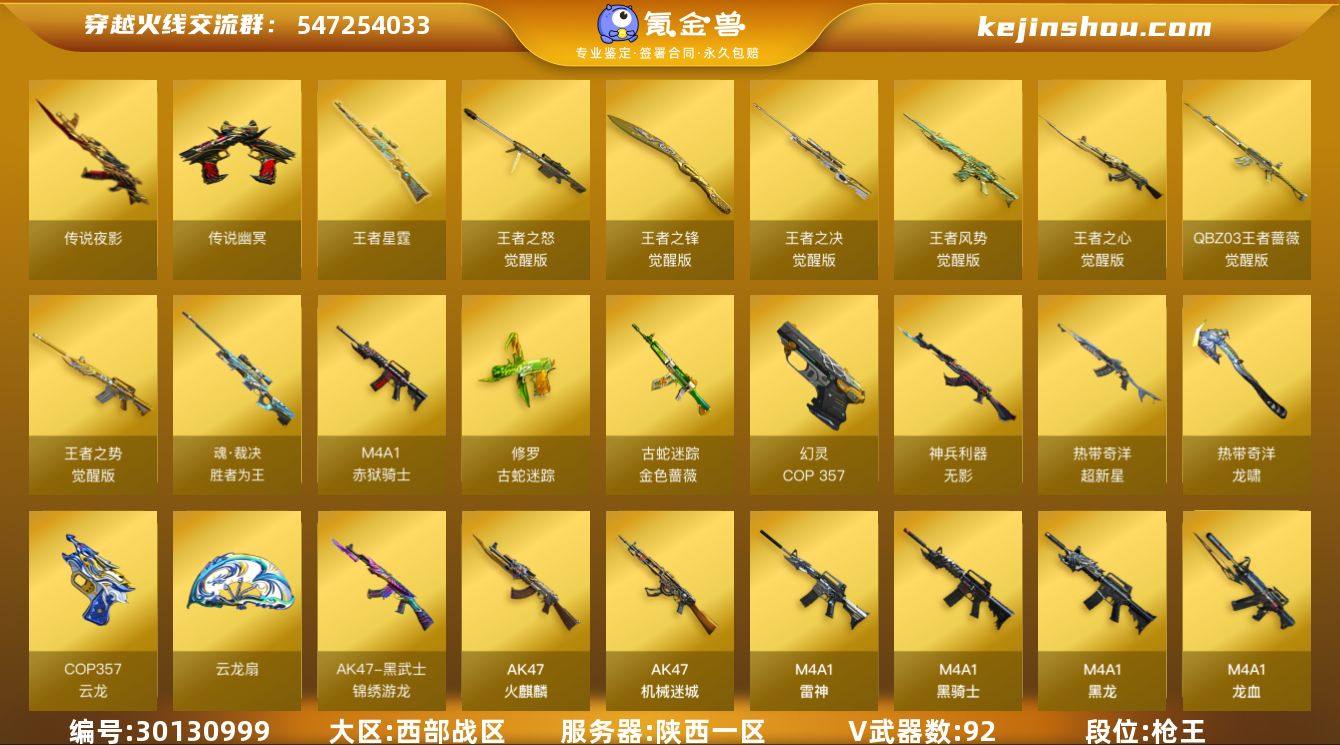(百V+三传说+四色幻神三件套+星霆+白虎带皮带小人枪+裁决带皮带小人枪+金色蔷薇带小人枪+5黑骑带金狐套带擎天柱+幻灵云龙套+多手枪+3个四防角色+2WCF点)cf西部/陕西一区/101V/传说影煞/传说夜影/传说幽冥/幻神+荣耀世冠白鲨+周瑜+动感闪耀+黄忠+幻神音效卡+幻神动感闪耀音效卡/王者星霆/白虎+冠军之虎+白虎-迷你小艾/裁决+百城联赛天津+裁决-雪莉杨+王者之决/QBZ金色蔷薇+金色蔷薇-空+QBZ王者蔷薇/5黑骑士+臻选金狐套+擎天柱/幻灵套+云龙套/COP幻灵+COP云龙*3+柯尔特-冠军之特+COP白鲨/毁灭三件套+黑骑士三件套/王者春(四防)/王者瞳闭月羞花(四防)/王者沙漠玫瑰(四防)/多皮可排