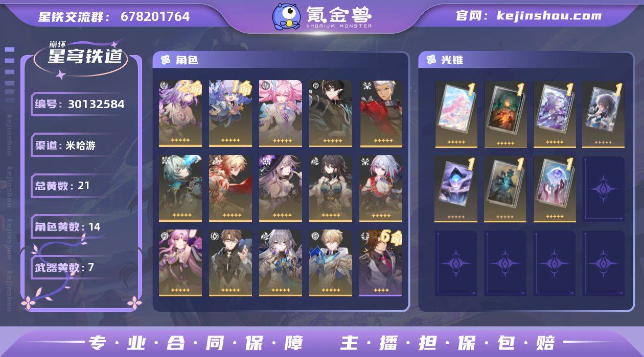 开拓等级:66 开拓者性别:男 总黄数:21 星轨专票:0 五星角色数:14 2命遐蝶,1命白露,0命昔涟,0命丹恒·腾荒,0命Archer,0命那刻夏,0命万敌,0命大黑塔,0命阮·梅,0命托帕&账账,0命符玄,0命瓦尔特,0命布洛妮娅,0命杰帕德 五星光锥数:7 1精爱如此刻永恒,1精生命当付之一炬,1精让告别,更美一些,1精但战斗还未结束,1精孤独的疗愈,1精记忆的质料,1精记忆永不落幕 邮箱状态:送网易邮箱