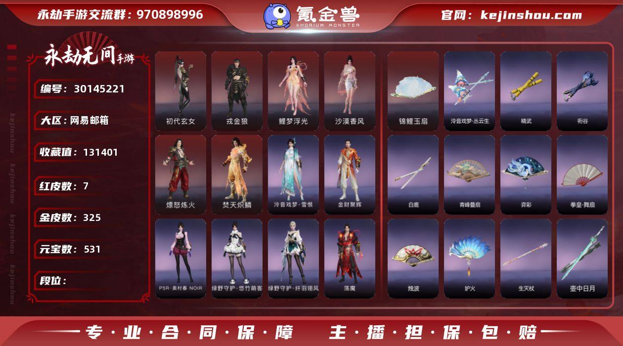 自己平常玩的号,上班没时间玩了,自带元宝,扇子红皮,七红,300多金,基本全武器都有金皮,火男变身器,60多万幻丝,火男泳装,飞鼠钩锁,全都有,想要的私,可小刀,屠龙刀勿扰,内附6个藏金匣,自带一些元宝500多可购买通行证