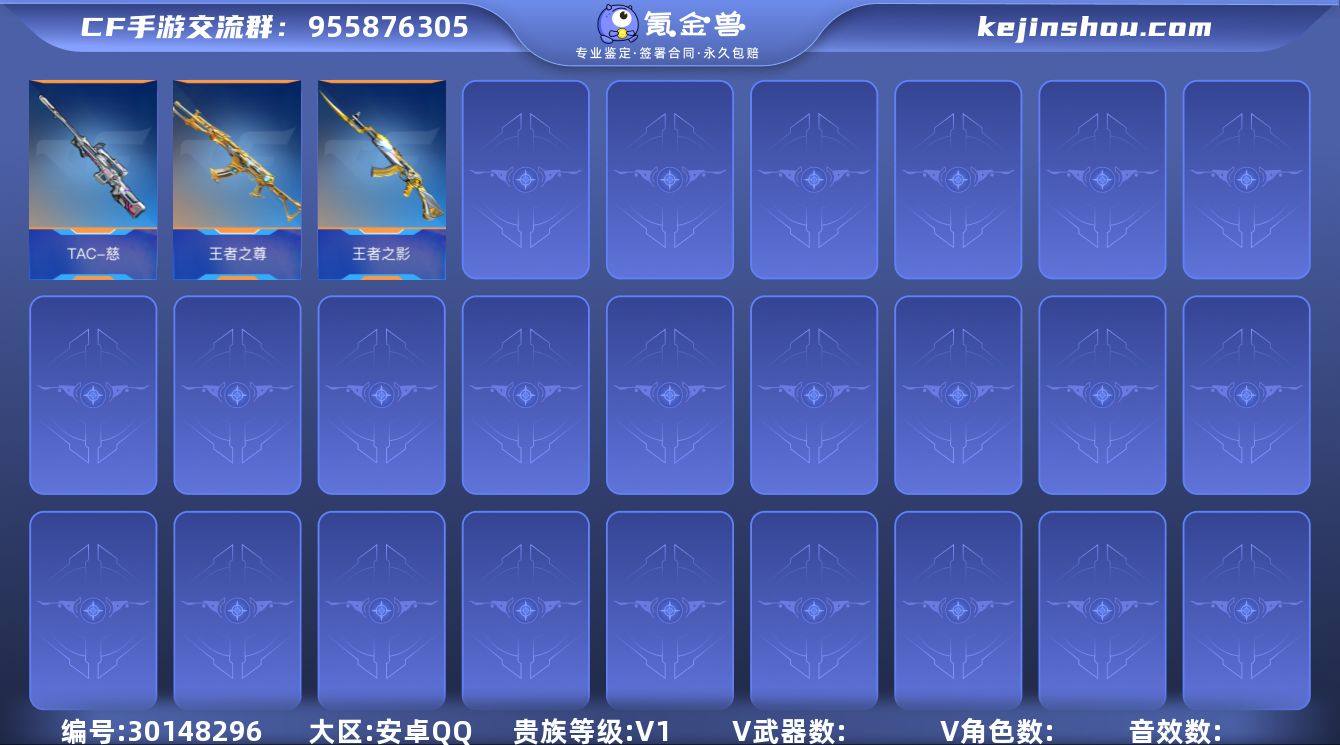 UCFM30 安卓Q 41武器8角色 王者之影 王者之尊 AK47-火麒麟 巴雷特-毁灭 M4A1-雷神 M4A1-赛博雷神 TAC一慈 可二次 枪战王者账号