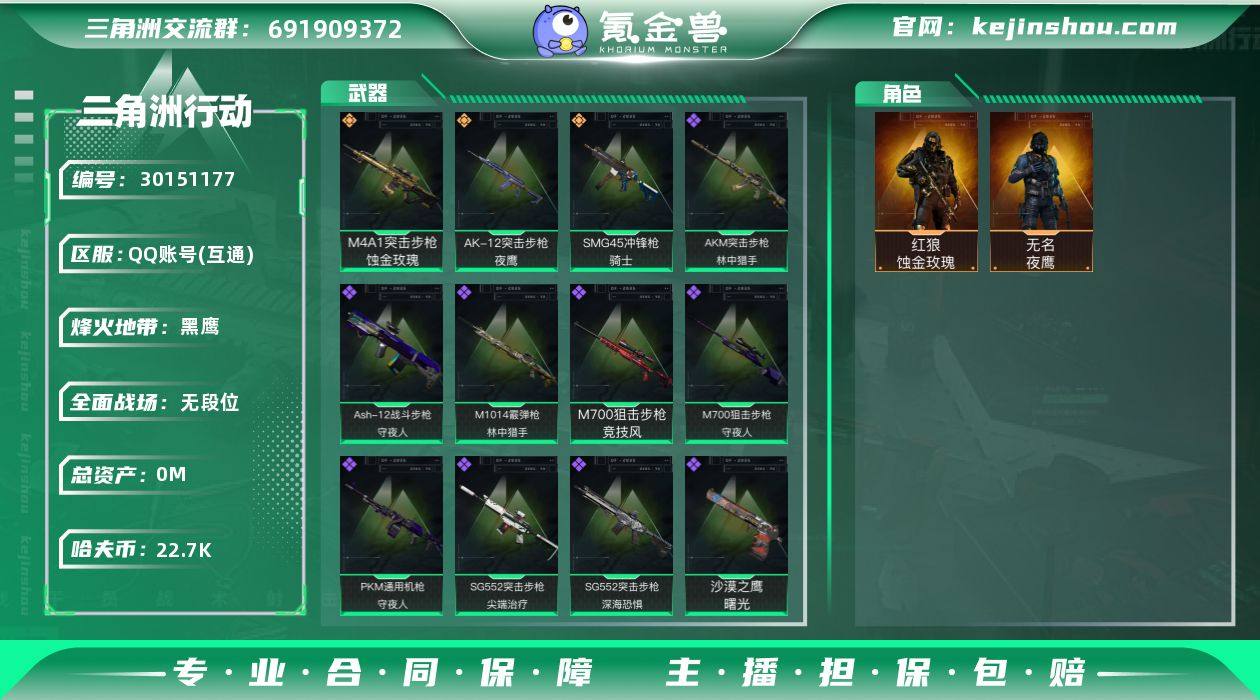 蚀金玫瑰套 81M 22703K哈夫币 113级限定通行证等级 74枪皮 60行动等级 5战场等级 基础安全箱(1X2)【套装】 蚀金玫瑰套 【特战干员外观】 红狼-蚀金玫瑰 无名-夜鹰 【近战武器】 黑鹰 【传说枪皮】 AK-12突击步枪-夜鹰 SMG45冲锋枪-骑士 M4A1突击步枪-蚀金玫瑰 【史诗枪皮】 SVD狙击步枪-暗夜猎手 AKM突击步枪-林中猎手 PKM通用机枪-守夜人 勇士冲锋枪-深海恐惧 M700狙击步枪-竞技风 SG552突击步枪-深海恐惧 AS Val突击步枪-尖端治疗 SR-25射手步枪-尖端治疗 SG552突击步枪-尖端治疗 Ash-12战斗步枪-守夜人 M700狙击步枪-守夜人 M1014霰弹枪-林中猎手 沙漠之鹰-曙光 PX_1989005