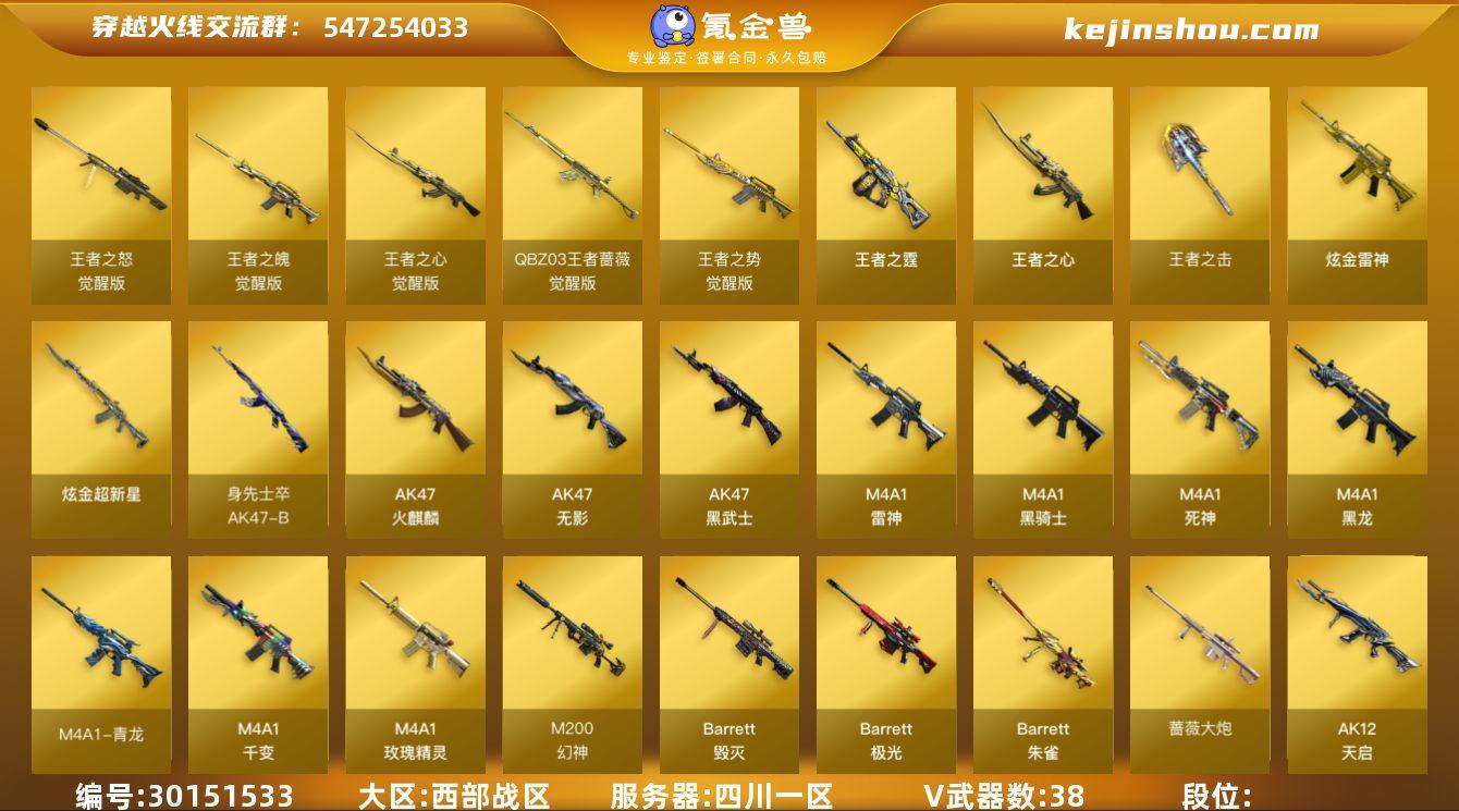 四川一区 可二次 73v M200-幻神 (N9-2022MVP) QBZ-03-王者蔷薇觉醒版 HK417-朱雀 王者之怒觉醒版 Barrett-毁灭 (荣耀之怒+音效卡) Barrett-朱雀 Barrett-极光 王者之魄觉醒版 M4A1-雷神 (LGD+荣耀之魄+冠军之怒) QBZ03-金色蔷薇 (世冠白鲨) M4A1-黑龙 王者之势觉醒版 M4A1-黑骑士 M4A1-千变 M4A1-死神 M4A1-青龙 王者之心觉醒版 AK47-火麒麟 (巅峰荣耀+CFS2018) AK47-无影 无影神兵利器 AK47-黑武士 AK12-天启 烈火动感闪耀 汤姆逊-烈龙 *2 加特林-炼狱 王者之霆觉醒版 炫金雷神 炫金超新星 *2 金色小号 AK常胜将军 AK身先士卒 AKB-战士 *2 AKB-战神 M4A1-玫瑰精灵 Barrett金色蔷薇 QBZ03-吕布 黄金AK 烟雾弹竞技荣光 闪光弹神工天巧 高爆手雷雷霆 闪光弹雷霆 烟雾弹雷霆 高爆手雷雷暴 闪光弹雷暴 烟雾弹雷暴 动感闪耀手雷 手雷-热带奇洋 【王者武器】 王者之心 王者之击 【副武器类型】 沙鹰-修罗 *3 沙鹰-天神 *2 天神动感闪耀 Cfcolt1911大黄蜂 【近身武器类型】 屠龙 *5 尼泊尔-雷霆 屠龙动感闪耀 龙啸 *2 麒麟刺 *2 擎天 斩神刀-雷暴 荣耀之证 猫猫手套 龙啸-烈火龙威 【稀有角色】 职业经理(四防) 王者春 (四防) 王者-瞳-闭月羞花 王者-葵-貂蝉 (四防) 迷迭香 职业选手 魅影 葵 审判者 奇洋探员 乔伊教练 兔囡囡 零水下丽影 樱缤纷夏日 兰新年限定 麻雀 黄金海岸 龙儿 潘多拉X 影武者X 暗夜X 新娜塔莎 幻影 堕天使 复仇者 超级对讲机 超级背包 炫彩背包 【武器皮肤及道具】 M200-幻神-N9-2022MVP QBZ03-荣耀世冠白鲨 雷神-荣耀之魄 雷PX_1669098