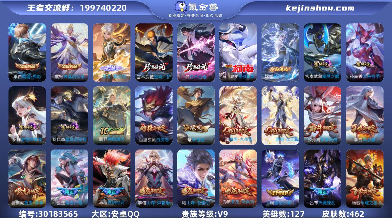 贵族等级:V9 典藏皮肤数:2 珍品无双皮肤数:0 无双皮肤数:1 珍品传说皮肤数:4 传说皮肤数:54 史诗皮肤数:144 皮肤数:462 英雄数:127 段位:传奇王者 卖家说:都是高质量皮肤