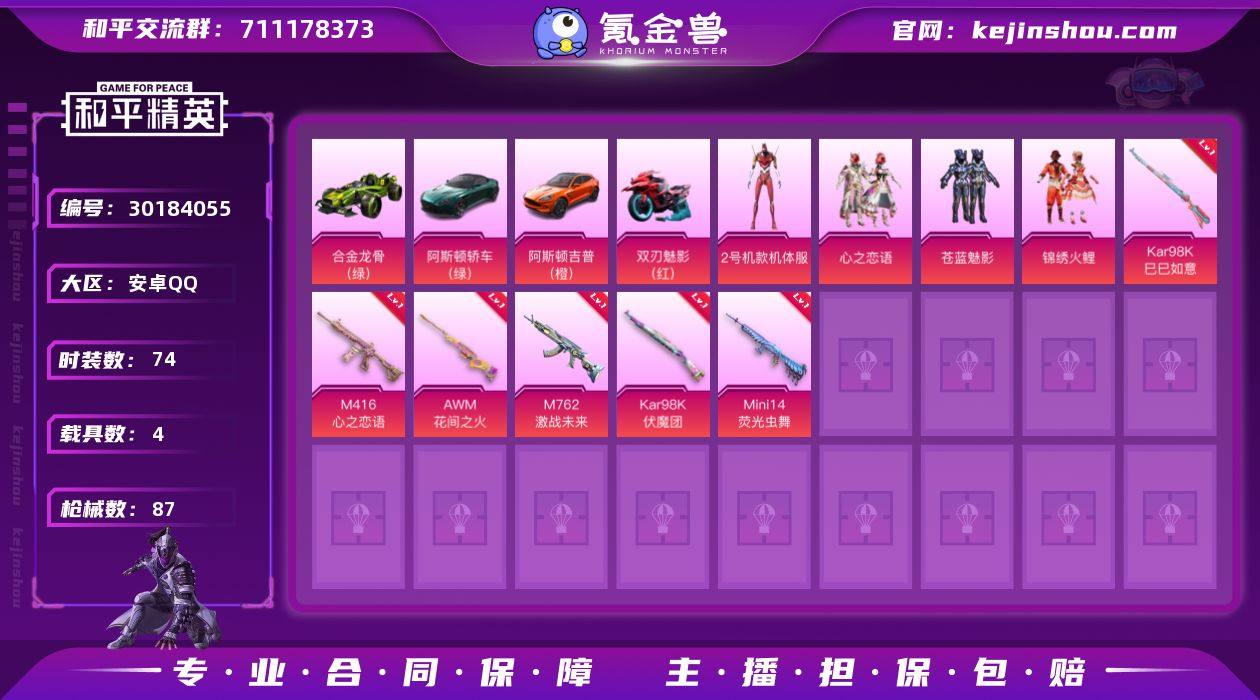 5粉装 6粉枪 4载具 74套装 87枪皮 20热门 阿斯顿马丁S绿色 阿斯顿马丁X橙色 合金龙骨绿色 双刃魅影红色 2号机款机体服(红螳螂) 角色-2号机款机体服 心之恋语 锦绣火鲤 苍蓝魅影 M416-心之恋语(3级) Kar98K-伏魔团(3级) AWM-花间之火(2级) Mini14-荧光虫舞(3级) M762-激战未来(2级) Kar98K-巳巳如意(4级) 仓鼠灰灰 海洋之心 破蛋小黄鸡 M416-仓鼠灰灰 白色伏地魔 SS6特训 SS22特训 SCAR-L-玉兔迎春 Mk47-乌木金纹 UMP45-蓝色火焰 MG3-幻世战舞者 AKM-虎虎生威 AKM-霓虹街区 M416-蓝色火焰 GROZA-春暖花开 M762-镭射皇者 真理款战斗服 长空猛禽 牛气冲天 明日香款战斗服 古堡领主飞行器 霓虹街区飞行器