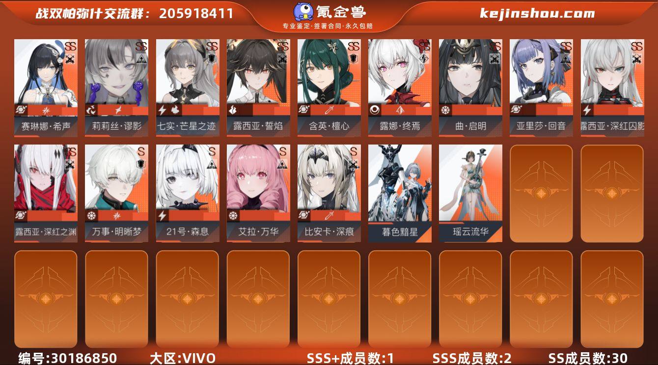 SSS+成员数量:1 SSS成员数量:2 SS成员数量:30 暮色黯星,瑶云流华