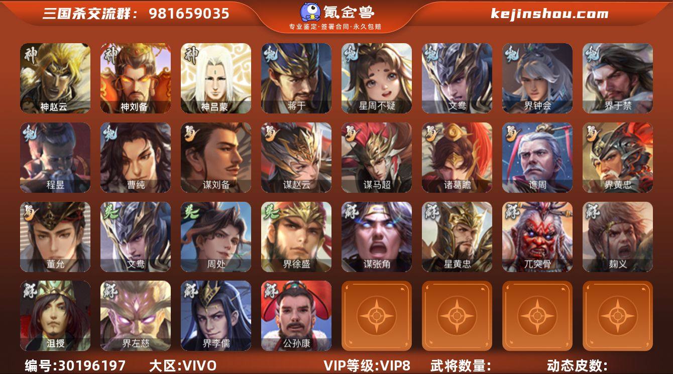 vivo账号找回包赔安卓通用,文小鸟,界徐盛,界李儒,诸葛瞻,星黄忠,动皮白马,界左慈,动皮钟会炸鱼小号