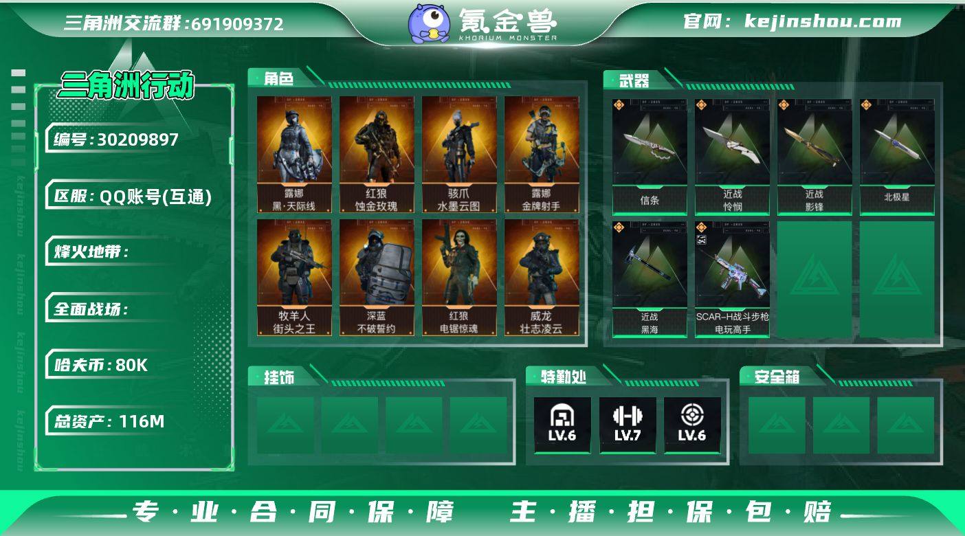 S559总资产116M,哈夫币8w,典藏1 近战6 枪皮数量298,露娜-黑天际线/红狼-蚀金玫瑰/骇爪-水墨云图/露娜-金牌射手/红狼-电锯惊魂/深蓝-不破誓约/无名-夜鹰/威龙-壮志凌云/牧羊人-街头之王,近战-信条/近战-北极星/近战-黑海/近战-影锋/近战-怜悯,SCAR-H战斗步枪-电玩高手(优品C)战场等级29上等兵, 行动等级60铂金,安全箱等时效性道具请以游戏内数据为准,详情请看图