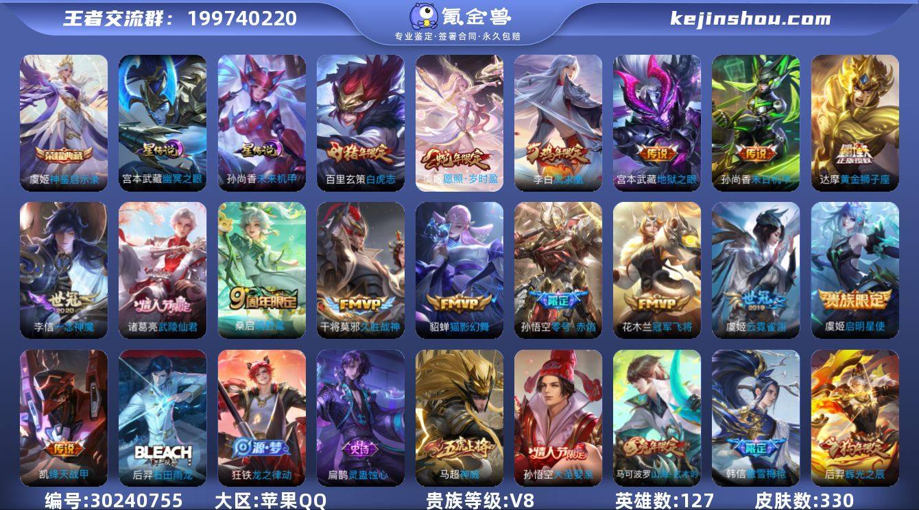 V8 1典藏 16传说 108史诗 330皮肤 最强王者