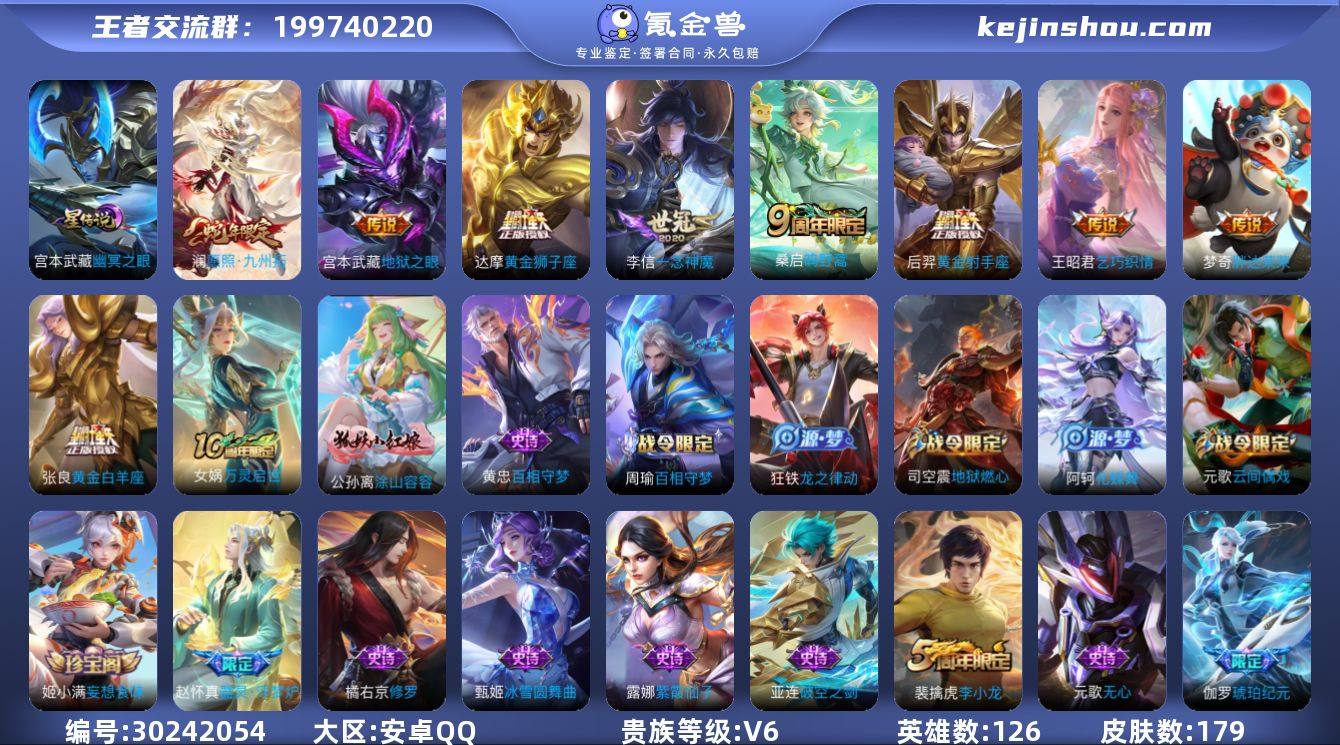 可二次【195皮肤1典藏6传说2星元怒海麟威 秒换绑不用等】安卓Q-128英雄【1水晶】银白咏叹调【2星元】幽冥火 幽冥之眼【6传说】神树通天 鸣野蒿 地狱之眼 黄金射手座 地狱火 怒海麟威【58史诗】九幽镇关 万灵启世 龙之律动 星界战将 顽岩魄 燃音魔法 江河有灵 地狱燃心 天穹祈灯 天穹之誓 逆浪荇歌 破空之剑 百相守梦 器灵·浮梦炉 涂山容容 蔬乡物语 完美运算 百解令 功夫厨神 魅力维加斯 猫狗日记 魔术师 鹰眼统帅 圣诞恋歌 鬼剑武藏 水晶猎龙者 修罗 火炮绅士 暗隐猎兽者 千年之狐 逐浪之夏 德古拉伯爵 绅士熊喵 天才门将 电玩小子 圣诞狂欢 末日机甲 金属风暴 梁祝 水果甜心 偶像歌手 缤纷独角兽 心灵战警 优雅恋人 纤云弄巧 乱世虎臣 皇家上将 冰雪圆舞曲 黄金分割率 无心 五谷丰年 未来纪元 天秀·音浪 节奏热浪 星夜王子 特工魅影 原初追逐者【108勇者】劲辣红锅 古海寻踪 妄想特派 剑破天穹 探海日志 春野之旅 云中旅人 命运角斗场 热血海滩 经纬探寻者 龙舞盛年 流音漫舞 金庭之子 破局者 群星魔术团 王牌新星 聚星闪耀 蔬乡物语 海盐诗旅 时空谍影 漠中幻影 功夫炙烤 浪漫序章 线条小狗 玫蓝誓约 景韶洛都 溯影追猎 鹤鸣心笺 虚灵犬护 罗小黑战记 布丁狗之约 灵野札记 春野闲踪 戏梦巡演 死霸装 锦麟游梦 小满鸭 噬灭天穹 雪境奇遇 星梦巡礼 金福满堂 命运加冕 克喵 踏浪烽翎 归虚梦演 暗都幽影 逆浪荇歌 长夏之忆 敬我三分 异域游侠 铁骨偃魂 熔金海岸 谧流熔炉 神迹守卫 破阵·退雄兵 灵卜魔法 完美运算 天穹祈灯 苍林狼骑 天穹之誓 未来纪元 龙腾万里 幻乐之宴 街头霸王 教廷特使 兔女郎 特工战影 功夫老勺 敏锐之力 纽约教父 秘密基地 乓乓大师 红桃皇后 幻夜卜梦 虹云星官 进击墨子号 次元突破 西部大镖客 鲨炮海盗猫 天使之翼 沉稳之力 幻想奇妙夜 海滩派对 丁香结 死亡骑士 忍·炎影 白执事 海滩丽影...