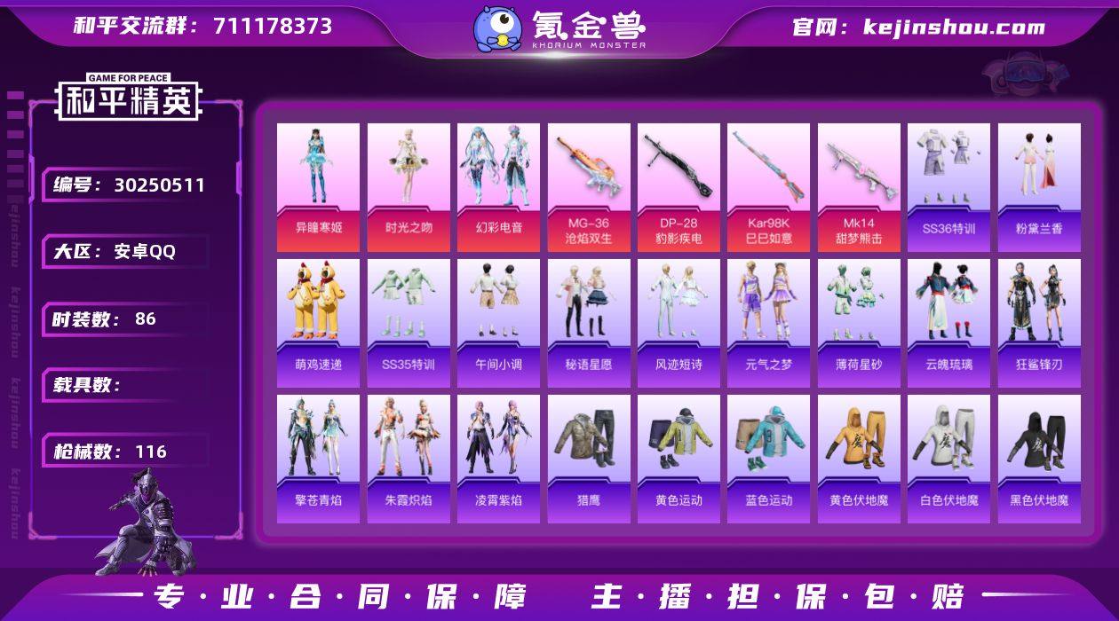 【0载具 4特效枪 3粉装 116枪皮 86套装】7印记/有特权卡/3.3万热力值/有懒羊羊/角色-异瞳寒姬,角色-时光之吻,套装-幻彩电音/4升级枪:Kar98K-巳巳如意,Mk14-甜梦熊击,MG-36-沧焰双生,DP-28-豹影疾电/3飞行器:异域银装飞行器,鸡智如我飞行器,炫彩糖果飞行器153759373x,编号:LYDNQ67