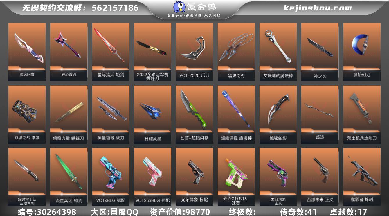 传奇数:41 卓越数:17 皮肤资产价值:98770