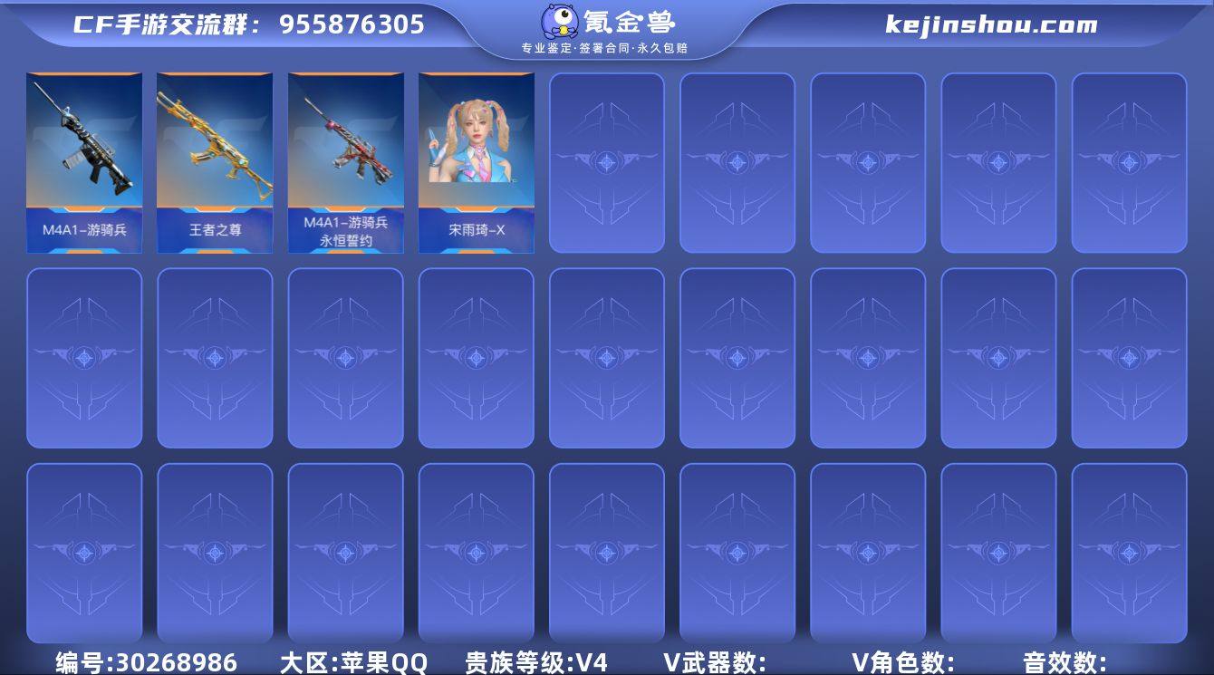 苹果Q☝贵族4☝宋雨琦-X☝M4A1-游骑兵一永恒誓约☝王者之尊☝81式-光明之神☝AK12-天启一高能霹雳☝详细见图☝