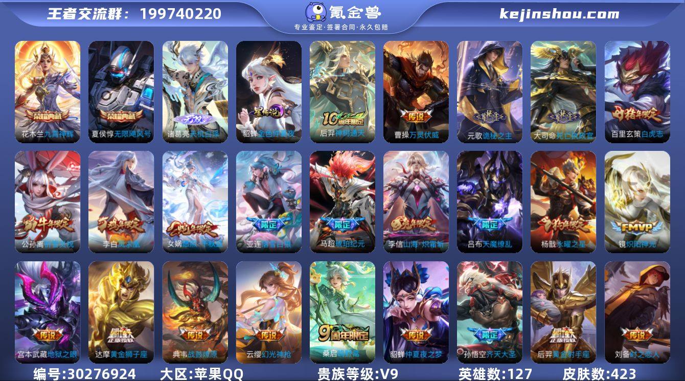 各种限定皮肤,外加一颗荣耀水晶,因家庭原因,没时间玩,忍痛割爱