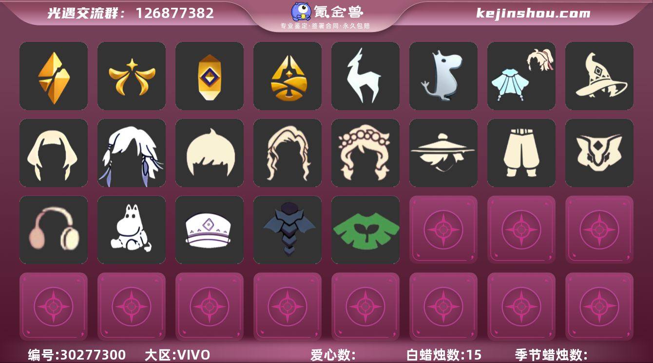 华为 手机账号 3珍稀物品 7毕业季 6毕业图 104蜡烛 【珍稀物品】白枭(帝企鹅发),透明蝶翼斗,彩虹围巾(五塑彩带斗) 【季节已毕业】风行季,表演季,破晓季,欧若拉季(欧若拉),追忆季,夜行季,归巢季 【完成地图】晨岛,云野,雨林,霞谷,墓土(暮土),禁阁 【礼包】兔子鞋(兔子拖鞋),新年裤(瑞气服饰),蝴蝶结(大蝴蝶结),巫师(巫师帽),橘子(大橘大利),雪花(雪花发夹),兔子(玉兔头饰)(玉兔发饰)(兔子发饰),四叶草(四叶草头饰),星月头饰(星月头冠),彩虹耳钉(彩虹耳饰),彩虹耳机,满月耳坠,鹿角(圣诞鹿角),福娃(福娃礼包)(春之日礼包)(铜钱斗),蝙蝠套(蝙蝠斗篷)(南瓜头),蜘蛛斗(蛛丝斗篷)(蛛网斗篷),猫套(皮皮猫斗)(皮皮猫礼包),红伞(瑞气纸伞),秋千(情人秋千),餐桌(野餐礼包) 【裤子】风行毕业裤子(羽袖长袍),蓝绿裤(高领舞服),武士裤,背带裤,搓澡巾 【面具】黄眉企鹅面具,夜行毕业面具(棕熊面具) 【面饰】黑框眼镜(粗框眼镜),红耳机 【项链】围巾(肩带) 【发型】小王子发型,留辫蘑菇头,虚荣,归巢毕业发型(五塑彩羽发),若笠(箬笠) 【头饰】平顶帽,蓝色音乐会(蓝色音乐符),羽毛发饰(多羽发饰) 【斗篷】冥龙斗篷,燕尾斗篷,遥鲲斗篷(双翼遥鲲斗),粉红绒毛斗篷(绒毛斗篷),绿芽,海洋斗 【配饰】鲲灯(追忆之书),相机(季卡相机),雨伞,高音钢琴(白色高脚钢琴)