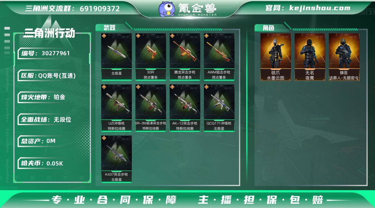 hf11371总资产202m纯币54m+水墨云图全套+北极星全套+捞点薯条全套+特斯拉线圈全套+s4s5赛季通行证+烽火等级60+特勤部门等级可以+守信不渝+永久包赔