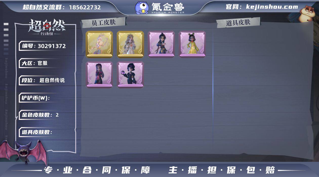 【Q1032】【段位】王牌 【幻梦皮肤数量】0 【星耀限定皮肤数量】0 【金色皮肤数量】2 【紫色皮肤数量】13 【道具皮肤数量】18 【铲铲币】45w 【累充】10720金砖 【赛季魔盒】豪华魔盒 【员工】小黄、爱丽丝、零、阿念、逍遥、薇薇安、巫铃儿、莉莉、艾伦、爱德华、兰、小满、临云 【金色皮肤】零-渡鸦公爵、巫铃儿-镜花辞 【紫色皮肤】艾伦-黎明猎手、阿念-庆宴绮愿、零-搬开山、莉莉-莓果陷阱、阿念-迷途僵宝、阿念-王子与骑士、莉莉-情公主、薇薇安-白光莹、零-青云逸歌、巫铃儿-素影瑶光、爱丽丝-丝缕哀歌、逍遥-绣春逍影、小黄-呱呱雨衣 【道具皮肤】刺刀-碧络琅环、额外的背包-飞花令、急救包-蔷薇物语、专业手电-星寂、铲子-龙鳞、夜视仪-金丝眼镜、传送按钮-昆仑镜、刺刀-铂刺与红萼、转轮手枪-新星时代、音响-happy猫、音响-鸣沙鼓、长鞭-小狗蛇点点鞭、短管猎枪-星光的裁决、背饰-蜜蜂线索、背饰-蝶恋花 【头饰】烛光纪念、太空鲨头套、雪墩墩头套、樱桃奶油布丁、惊魂南瓜头套、精致露比头套、鱼头怪头套、烈焰红唇头套、大葱明头套、火爆了头套、面具马头套、哈士奇头套、萨卡班甲鱼头套、嘻嘻头套、滑稽头套、呆滞头套、卑微头套、小狗蛇点点头套、炙热烧烤、像素朋克墨镜、后室幸存者头套 【挂饰】尘封旧事、钗头凤、糖果守卫、拂云仙 【动作】金城舞、不孬摇、七仔摇、luvaboy、鸳鸯戏、刀马舞、鹏友摇、心跳摇、卡点舞、伤心摇、小雨摇、蝴蝶步、舞台中心、带你逃跑吧、律动迪斯科、举牌、抬手、KT猫摇
