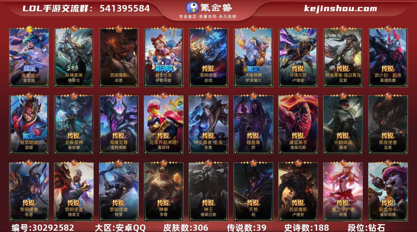 皮肤数:306 典藏皮肤数量:0 神话皮肤数量:1 传说皮肤数量:39 史诗皮肤数量:188 段位:钻石