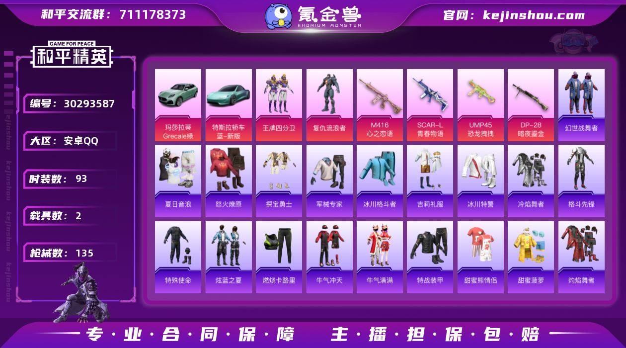 【玛莎拉蒂/特斯拉/漫步者/5特效枪/3级猫包】可改实名 2粉2车5特效枪93套装135枪皮 玛莎拉蒂Grecale(薄荷绿)特斯拉Roadster(水滴蓝)1级DP-28-暗夜鎏金 6级UMP45-恐龙拽拽 4级SCAR-L-青春物语 6级GROZA-香水柠檬 6级M416-心之恋语 王牌四分卫 复仇流浪者 英勇保护者 漫步者 飞驰魅影 筑梦精灵头盔 魅影蝠王头盔 彩虹甜喵头盔 飞驰魅影头盔 环太平洋头盔 时空追击者头盔 星之彼岸头盔 怪笑疯兔头盔 山经魅狐头盔 彩虹甜喵背包 飞驰魅影背包 橘柚倾心背包 暗夜玫瑰背包 镭射皇者背包 百万伏特背包 百万伏特背包 王牌印记7 热力值44341 K28888 和平精英买号永久包赔带二次营地ID:750049121