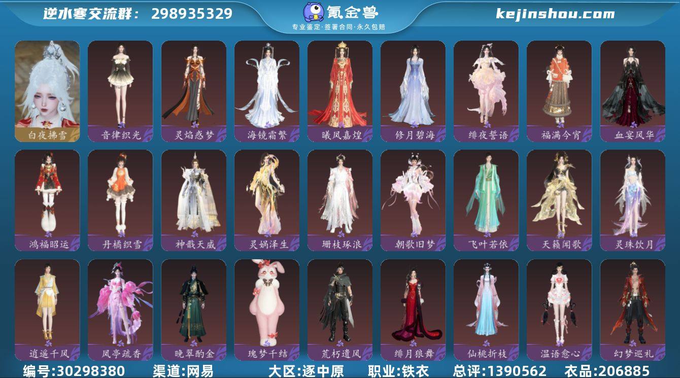 网易支付状态:未注册 换绑冷却:无冷却 职业:铁衣 总评:1390562 衣品:206885 白夜拂雪 音律织光,灵焰惑梦,海镜霜繁,曦凤嘉煌,修月碧海,绯夜誓语,福满今宵,血宴风华,鸿福昭运,丹橘织雪,神戬天威,灵娲泽生,珊枝琢浪,朝歌旧梦,飞叶若依,天籁闻歌,灵珠饮月,逍遥千风,凤亭疏香,晚翠酌金,瑰梦千结,荒朽遗风,绯月狼舞,仙桃折枝,温语愈心,幻梦巡礼,难负君思,云汉逢夕,空冥铃语,绛英流芳,芳汀花影,星迹梦语,川峦游墨,琅霄吟月,悬蛛结心,狸奴颂锦,平野星罗,玉蕊含梅,霜天凝露,金翎琼枝,晴岚蜃海,幽兰沐月,岁寒竹雪,纯白心绪,幽蝶眠花,灼金喵影,律动音阶,蝎影度月,跃动心芒,闻鹤九皋,筵舞云歌,晶梦绮舞,恣行无拘,花萼繁舞,雪月凌风,灵语星彩,云腾游雾,呱容月貌,丹枫秋意,四海无拘,谁家新燕,烟黛粉墨,茸客衔春,竹间萌客,糯粽缠青,风动荷衣,南风知暑,露染芙蕖,鲤跃今宵,开阳执戈,紫微御宵,贪狼摄星,混天焚莲,衣香鬓影,逆鳞濯月,金祷昼梦,曦照东晖,青林雀舞,灵兔献瑞,鳞骨逢幽,玄喵夜行,斗墨金枢,白尘游昼,星宫遐音,玉泽凌烟,烽火浮生,醉墨狂歌,赤狐魅语,林泽清瑶,广寒游仙,白灵雪魅,灵鹿瑶羽,极夜天曦,墨隐千秋,楚楚浅茉,鳞衫丽织,惊鸿舞衣,聆萤语,圣月澄空,霸揽长霄,天狼北顾,银角辟幽,素尘凌霜,枫华九霄,空林悠萌,春梢剪锦,花朝春信,如意瑞喜 骋风叱焰,贺岁喜狮,木小马 卖家说:累充2.5万左右,自用天赏13个,5个天赏白发,1个坐骑,1个宠物,御剑,2个武器皮肤,1个绝技皮肤,舞阳城白发2个,镜天阁白发1个,衣服多多,半折卷跟折扣卷多多,挚缘11级还有3周12级