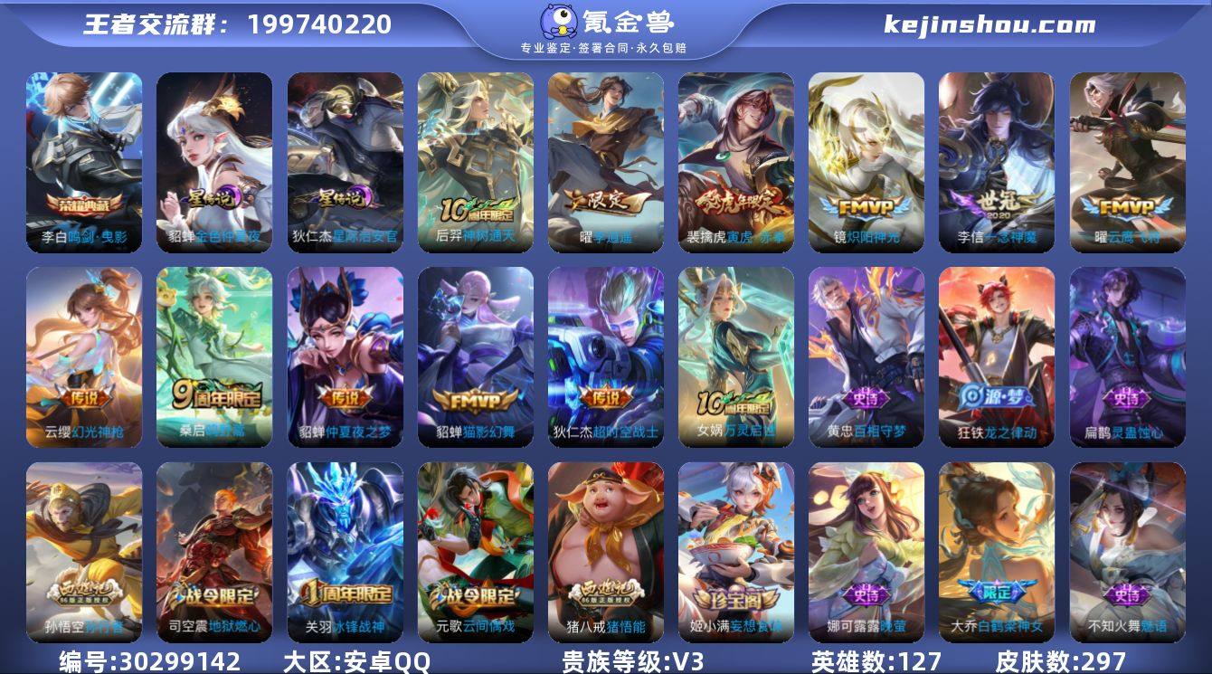 王者荣耀安卓Q区账号,皮肤多,荣耀典藏、传说、史诗皮肤都有,具体数量看图~ 荣耀典藏1个,传说皮肤11个,史诗皮肤90个,皮肤数量多,质量也不错,适合喜欢收集皮肤的朋友! 本QQ什么游戏都有,穿越火线,英雄联盟,无畏契约,三角洲,金铲铲,火影忍者,和平精英,都有成品账号