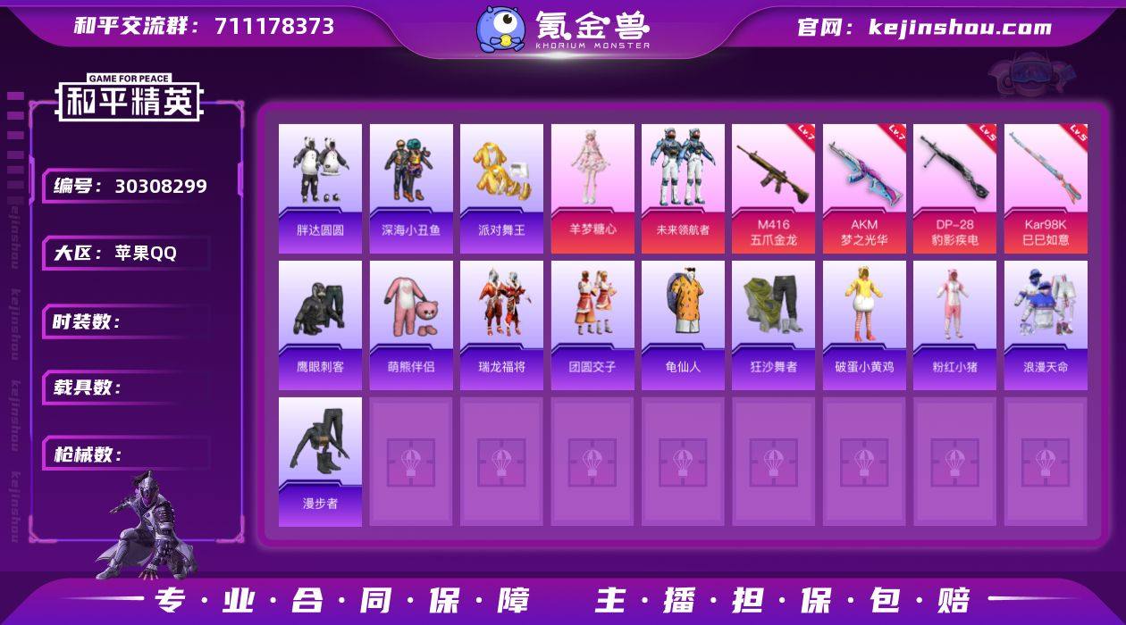 安卓 手Q-8粉装-7特效枪-2载具-2粉色飞行器-97540热力值-20王牌印记-248套装-302枪皮 【热门品类】:套装-深海小丑鱼,套装-金羽特工,套装-龟仙人,套装-浪漫波比 【粉色套装】:粉装-精灵迷巫,粉装-银刃赛罗,角色-擎天柱,角色-幻影,粉装-金丰海韵,角色-狂魅哈莉,角色-狂魇小丑,角色-绯穹魔姬 【粉色枪皮等级】:AKM-梦之光华(七级),M416-心之恋语(七级),M762-激战未来(七级),Kar98K-巳巳如意(五级),Mk14-福马献瑞(五级),AA12-G-萌骑幻想(二级),DP-28-豹影疾电(五级) 【粉色载具】:玛莎拉蒂Ghibli(粉),擎天重拳 【粉色枪皮】:AKM-梦之光华,M416-心之恋语,M762-激战未来,Kar98K-巳巳如意,Mk14-福马献瑞,AA12-G-萌骑幻想,DP-28-豹影疾电 【粉色飞行器】:炫彩糖果飞行器,踏卷乘风飞行器 【粉色降落伞】:深海曼妙降落伞,精灵迷巫降落伞,炫紫旋律降落伞,古堡领主降落伞,四圣焕新降落伞,阿狸红降落伞,暗夜玫瑰降落伞,太空嘟嘟降落伞,第五大道降落伞,炫光之旅降落伞,精灵梦叶罗丽降落伞,金丰海韵降落伞,幻星舰长降落伞,双重狂想降落伞,炫彩糖果降落伞,辉光之愿降落伞,天马神君降落伞 【稀有套装】:套装-龟仙人,套装-圣穹绘梦,套装-雪国风尚,套装-马上有钱,套装-雏菊兔兔,套装-萝兰蝴蝶,套装-糖糖葫芦,套装-青团波波,套装-棉花软糖,角色-都市丽猫,套装-燕燕于飞,套装-鱼渊荷华,角色-糖霜甜心,角色-蜜桃派对,套装-极速光影,套装-诡诞巡游,套装-混沌火种,角色-绛羽幽主,套装-朱霞炽焰,套装-凌霄紫焰,套装-书海巡游,套装-画境星梦,套装-琴音绮想,角色-碧青流霞 【稀有枪皮】:AKM-夜灯,AKM-奇异狩猎者,AKM-彩虹符号,AKM-恐龙拽拽,AKM-春暖花开,AKM-灼热熔岩,AKM-破晓战魂,AKM-缤纷海域,AKM-萌趣颜团子,AKM-虎虎生威,AKM-霓虹街区,AKM-龙的传...