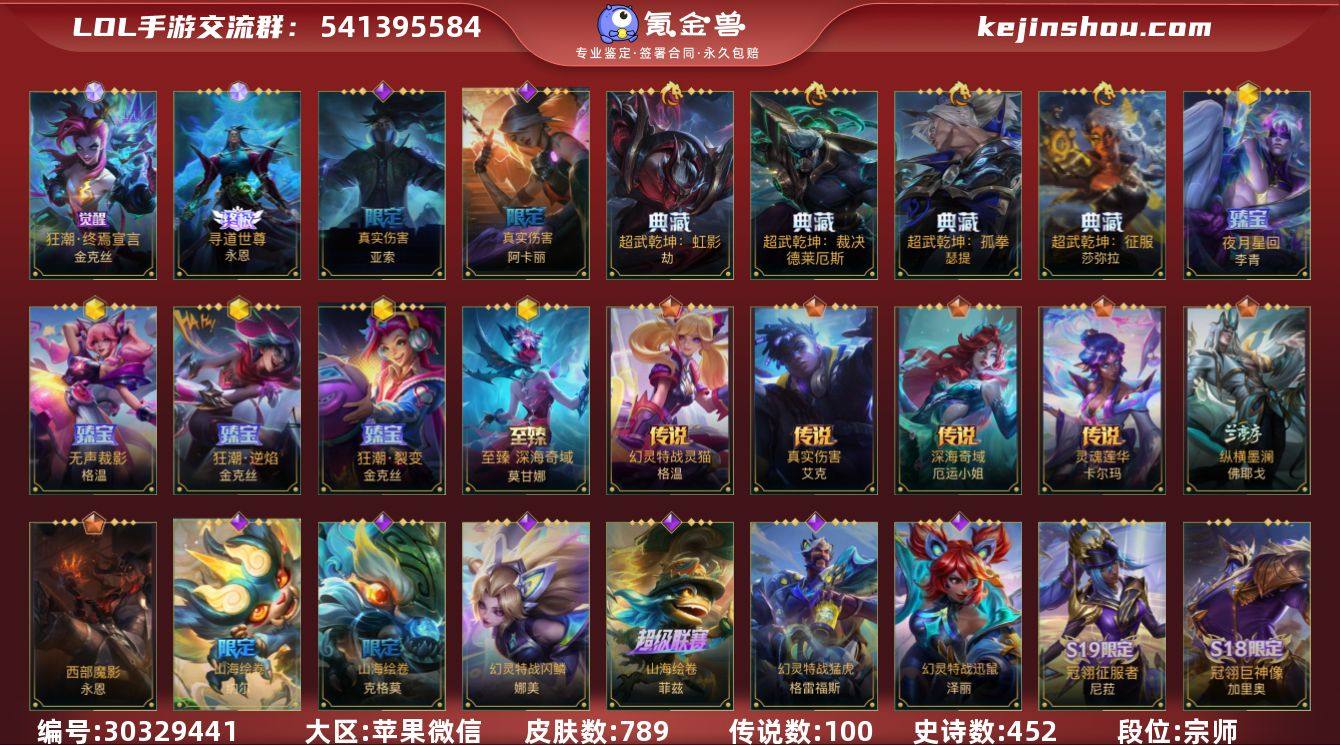 18.6收藏分,苹果微区,1月出可实名,满皮789账号。氪满金克斯。5级宠物,橙色石头2770+】英雄133 皮肤786 2终极/4典藏/66神话/100传说/452史诗/ 傲世宗师