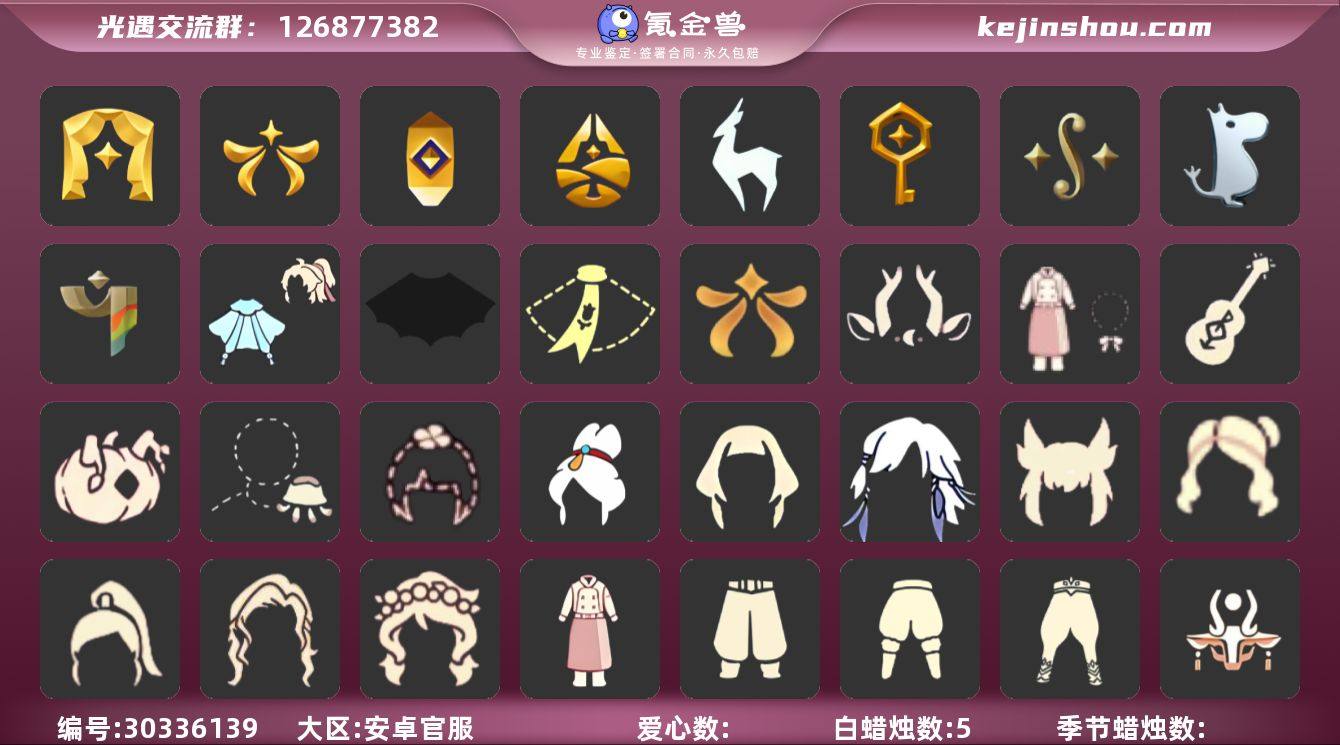 [17249708]安卓官服 邮箱账号 4珍稀物品 12毕业季 6毕业图 214蜡烛 【珍稀物品】白枭(帝企鹅发),玫瑰花,透明蝶翼斗,彩虹围巾(五塑彩带斗) 【季节已毕业】梦想季,集结季,小王子季(王子季),潜海季,表演季,破晓季,欧若拉季(欧若拉),追忆季,夜行季,归巢季,九色鹿(九色鹿季),筑巢季 【完成地图】晨岛,云野,雨林,霞谷,墓土(暮土),禁阁 【礼包】女巫裙,新年裤(瑞气服饰),水母(水母肩饰),绒帽(温暖绒帽),南瓜(冥龙南瓜),巫师(巫师帽),蛛网朋克(蜘蛛朋克头),绊爱(绊爱斗篷)(绊爱礼包),橘子(大橘大利),雪花(雪花发夹),贝壳(贝壳发饰),兔子(玉兔头饰)(玉兔发饰)(兔子发饰),四叶草(四叶草头饰),星月头饰(星月头冠),枯角(巫树犄角),鹿角(圣诞鹿角),创始人(创始人斗篷),围巾(小王子斗篷)(小王子围巾),福娃(福娃礼包)(春之日礼包)(铜钱斗),蝙蝠套(蝙蝠斗篷)(南瓜头),蜘蛛斗(蛛丝斗篷)(蛛网斗篷),白绒金(白雪斗篷),竖琴(雏鸟之琴),吉他(音韵吉他)(白吉他),红伞(瑞气纸伞),黄伞(夏日阳伞),秋千(情人秋千),跷跷板(情人跷跷板),茶桌(花憩茶桌),茶壶(小憩茶桌),小船(情人小船),雪花球(雪花水晶球) 【裤子】筑巢季·裤子(设计师长袍),飞天裤(柔缎花边连)(九色鹿丝带裤),王子服(小王子套装),蓝绿裤(高领舞服),武士裤,背带裤,搓澡巾 【面具】黄眉企鹅面具,夜行毕业面具(棕熊面具),呼吸面具(潜水面具),贴花面具(丛林黑面具),凤凰面具 【面饰】黑框眼镜(粗框眼镜),红耳机 【项链】围巾(肩带) 【发型】小王子发型,单侧绑发(单边小辫),留辫蘑菇头,飞天盘发(九色鹿丸子头),虚荣,归巢毕业发型(五塑彩羽发),若笠(箬笠) 【头饰】平顶帽,蓝色音乐会(蓝色音乐符),行军锅头盔(六边锅帽子)(双耳锅帽子) 【斗篷】燕尾斗篷,冥龙斗篷,黄色连帽披风(连帽斗篷)(斜边队长斗篷),遥鲲斗篷(双翼遥鲲斗),粉红绒毛斗篷(绒毛斗篷),蟑螂斗(凤凰斗篷),绿芽,海洋斗 【...