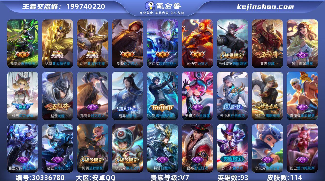 W14651,,可立即换绑无需挂单养号,,铭文满级,,,传说4,,星传说1,,按键2,,夺宝154,,安卓Q-V5-尊贵铂金II段位-124英雄-156皮肤-4传说-46史诗 【传说皮肤】:澜愿照九州拓,桑启鸣野蒿,镜炽阳神光,梦奇胖达荣荣 【限定皮肤】:姜子牙天穹之誓,狄仁杰阴阳师,赵云皇家上将,项羽海滩派对,孙悟空孙行者,李元芳匿光侦查者,梦奇顽趣,裴擒虎李小龙,云中君纤云弄巧,嫦娥拒霜思,鲁班大师探海日志,阿古朵江河有灵,张良古海寻踪,蒙犽百解令,蒙恬荣光圣徽,鬼谷子天穹祈灯,伽罗琥珀纪元,姬小满妄想食味,沈梦溪龙舞盛年,刘邦剑破天穹,程咬金群星魔术团,刘备异域游侠,周瑜熔金海岸 【年限皮肤】:澜愿照九州拓 【赛季限定】:鲁班大师探海日志,张良古海寻踪,鬼谷子天穹祈灯,刘邦剑破天穹,姜子牙天穹之誓,东皇太一噬灭天穹,太乙真人谧流熔炉,钟馗虚灵犬护,甄姬逆浪荇歌,梦奇顽趣,蒙恬荣光圣徽,牛魔星界战将 【战令限定】:周瑜百相守梦,孙策百相守梦,周瑜线条小狗 【史诗皮肤】:露娜紫霞仙子,赵云皇家上将,赵云未来纪元,甄姬冰雪圆舞曲,王昭君偶像歌手,廉颇地狱岩魂,宫本武藏鬼剑武藏,孙尚香水果甜心,嬴政摇滚巨星,妲己魅力维加斯,妲己女仆咖啡,吕布圣诞狂欢,曹操幽灵船长,李白千年之狐,张飞乱世虎臣,花木兰水晶猎龙者,夏侯惇乘风破浪,小乔缤纷独角兽,百里守约特工魅影,铠曙光守护者,程咬金功夫厨神,阿轲节奏热浪,大乔猫狗日记,狄仁杰鹰眼统帅,公孙离无限星赏官,娜可露露晚萤,不知火舞魅语,橘右京修罗,裴擒虎李小龙,云中君纤云弄巧,孙悟空孙行者,嫦娥拒霜思,梦奇顽趣,李元芳匿光侦查者,阿古朵江河有灵,蒙犽百解令,蒙恬荣光圣徽,伽罗琥珀纪元,姬小满妄想食味,牛魔星界战将,赵怀真器灵浮梦炉,阿轲化蝶舞,狂铁龙之律动,后羿石田雨龙,周...