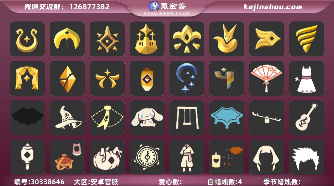 18季5翼魔法耳坠玫瑰花白枭蝙蝠斗白雪斗篷TGC斗篷秋千王子围巾 资源:蜡烛 434 爱心 163 红烛 20 翼5 已毕业地图:全图毕业 毕业季节:魔法季 圣岛季 梦想季 集结季 小王子季 潜海季 表演季 破晓季 夜行季 追忆季 拾光季 归巢季 九色鹿季 筑巢季 二重奏季季卡 欧若拉季季卡 半风行季 预言季季卡 毕业季节物品:咖喱帽 双边耳坠 毕业手碟 遥鲲斗篷 凤凰面具 凤凰斗篷 队长面具 双耳锅帽 胜利号角 连帽斗篷 小王子发型 小王子套装 玫瑰花 暗红斗篷 单边小辫 氧气面具 燕尾斗篷 黄眉企鹅面具 白枭发型 双翼遥鲲斗篷 冥龙斗篷 肩带 追忆之书 粗框眼镜 季卡相机 西部帽 五塑彩羽发 五塑彩带斗 九色鹿丸子头 九色鹿丝带裤 九色鹿飞天斗篷 设计师长袍 光之子试衣 稀有礼包:祥云瑞气服饰 巫师帽 大桔大利 雪花发饰 星月头冠 九色鹿角 巫树犄角 圣诞鹿角 TGC 斗篷 王子围巾 线框斗篷 蝙蝠斗 白雪冬 粽叶斗篷 中秋灯笼 秋千 跷跷板 冥龙南瓜 水晶灯 大耳狗抱枕 热门裤子:背带裤 遥鲲长袍 奔月长袍 小丑服 女仆围裙 美工衣 祥云服饰 热门面具:矮人面具 狐狸面具 黄鼠狼面具 凤凰面具 潜海面具 棕熊面具 盲僧眼罩 玫瑰花面具 龙头 吸血伯爵面具 黑脸 热门发型:海藻头 爆炸头 大胡子 小飞象 雨妈 卡卡 平菇 龙骨 指甲盖 箬笠 公主头 粗辫 书虫 总裁头 正太 高马尾 明制帽 郡主头 军帽 绿丝带 虚荣 白枭 圆环发辫 留辫蘑菇头 兔子头 双辫发型 春丽丸子头 南瓜头 巫师帽 猫猫头 女巫发型 圣诞帽 绊爱发型 光头 热门头饰:多羽发饰 尖角牛仔帽 牛仔帽 大桔大利 花环 珊瑚发饰 雪花发饰 蓝色音乐会 晃悠悠...