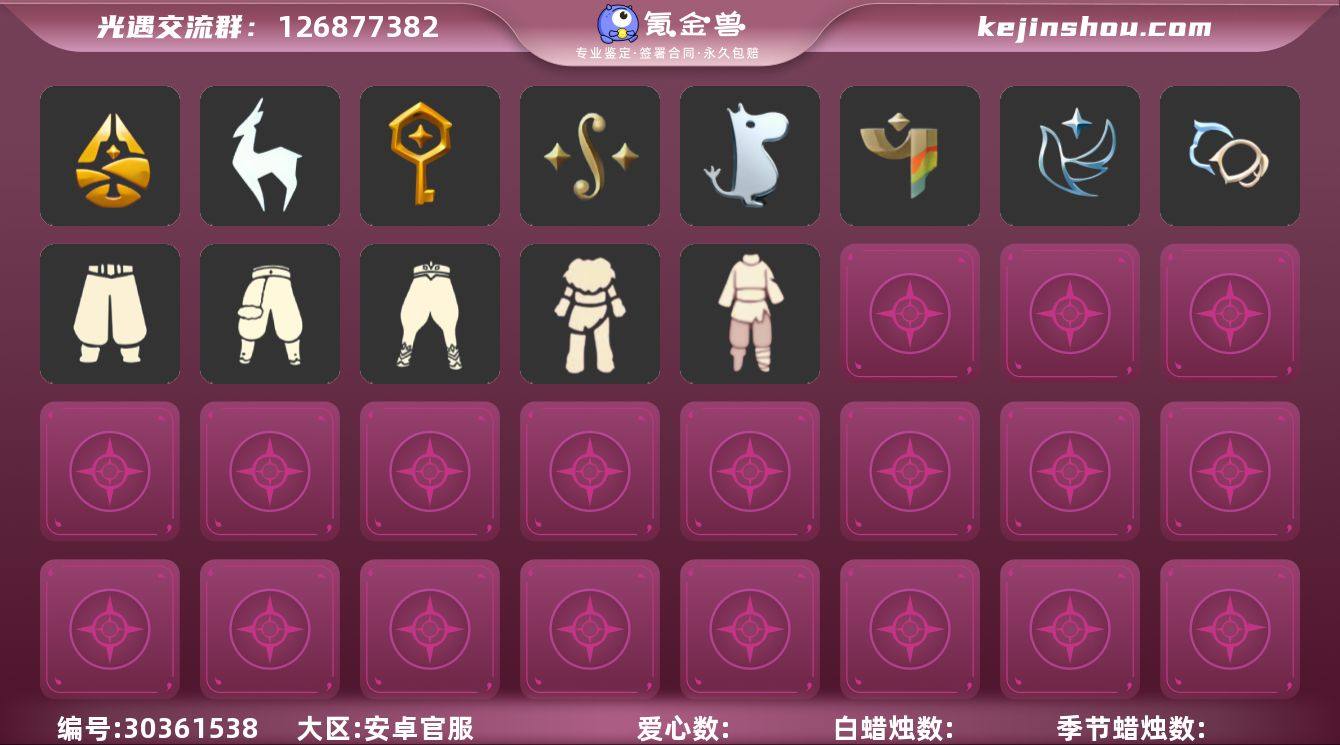 苹果官服13季巫师蝙蝠武士裤超多礼【JLGY0147】 常驻:霞谷 季节:破晓季,欧若拉,夜行季,拾光季,归巢季,九色鹿,筑巢季,二重奏季,姆明季,彩染季,青鸟季,双星季,迁徙季 礼包:致爱打扮,向日葵连衣裙,兔子拖鞋,跃动跑鞋,星月头冠,神鹿祝福礼包,彩虹耳机,巫树犄角,大蝴蝶结,夏日有友礼包,巫师帽,贝壳发饰,玉兔发饰,小狗周年头饰,迷你大耳狗发饰,四叶草头饰,蓝色音乐会,小王子围巾,欧若拉之翼,异彩莲花斗篷,蝙蝠斗,浪漫流星斗篷,绊爱礼包,狐狸背包,冥龙南瓜,猫咪背饰,自然之声礼,周年庆抱枕,大耳狗抱枕,大铁头,姆明饰品套装,树精肩饰礼包,献瑞折扇礼包,渐变双马尾发饰礼包,大橘大利,南瓜头,青衫落拓礼包,蝴蝶与花发饰,小海牛配饰,小黄鸭发饰 热门复刻:海洋斗,武士裤,虚荣,正太头,猫猫头,背带裤,花环长发,红耳机,箬笠,平顶帽,雨伞,高音钢琴,白金斗篷,黑金斗篷,黄鼠狼面具,疯帽匠发型,女巫发型 热门物品:双翼遥鲲斗,冥龙斗篷,留辫蘑菇头,高领舞服,透明蝶翼斗,棕熊面具,绒毛斗篷,西部帽,粗框眼镜,季卡相机,五塑彩带斗,五塑彩羽发,九色鹿飞天斗篷,九色鹿丝带裤,九色鹿丸子头,光之子试衣,设计师长袍,白色高脚钢琴,蓝色燕尾服,合奏挂画,姆明抱枕,姆明大伞,妮妮长裙,彩染围巾斗篷,辉光羚羊面具,青鸟斗篷,青鸟面饰,蓝色星星光环,暮星斗篷,蓝色毛绒绒鞋,蓝色毛绒裤子,海牛鹿角头饰 资源:36/19/7 身高1.84-13.84,当前13.50 -具体资源以衣柜为准-