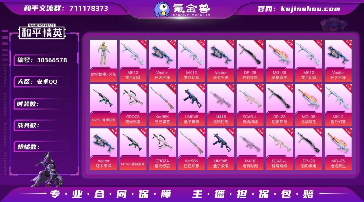 【1神装-4粉装-12粉枪-0载具-4珍稀飞行器-112套装-171枪皮】热力值:56005 历史最高段位:传奇王牌13星 王牌印记:5 传奇印记:1 卓越印记:4 Lv:56地铁满天赋