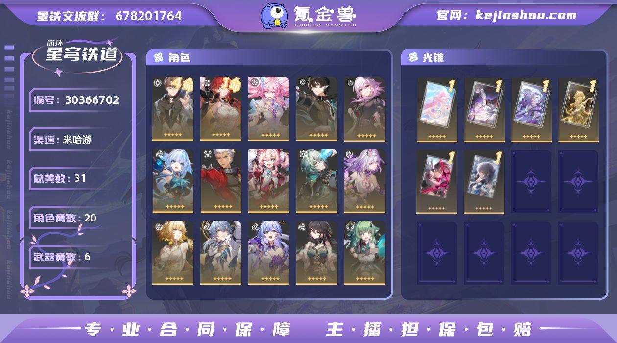 21个五星角色,8个五星光锥,等级70级,主线剧情全过完,有顶级配队