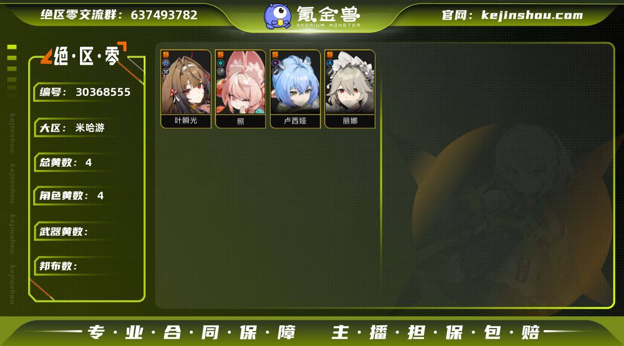 冒险等级:5 总黄数:4 五星角色数:4 0命叶瞬光,0命照,0命卢西娅,0命丽娜 卖家说:官服,纯手工初始号,5级女主,叶瞬光,卢西娅,照,丽娜,不提供游戏实名信息,可绑定游戏大手机,活邮可换绑